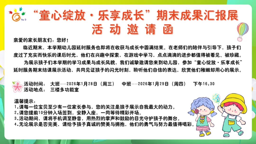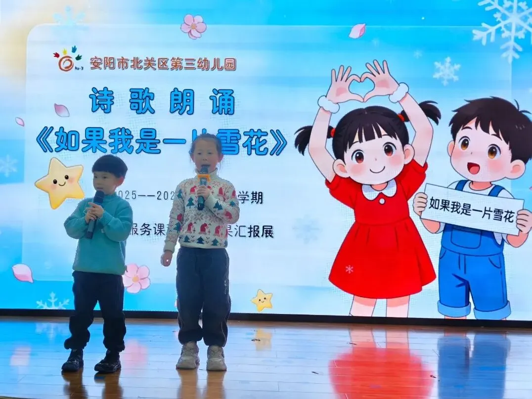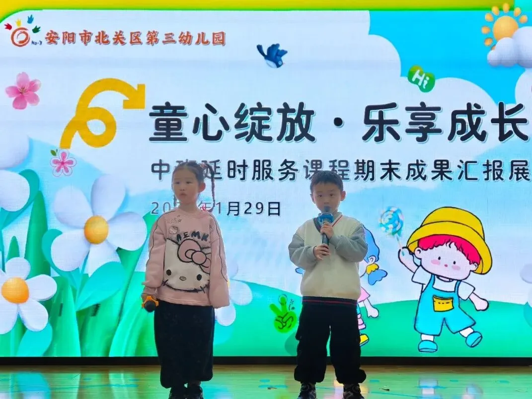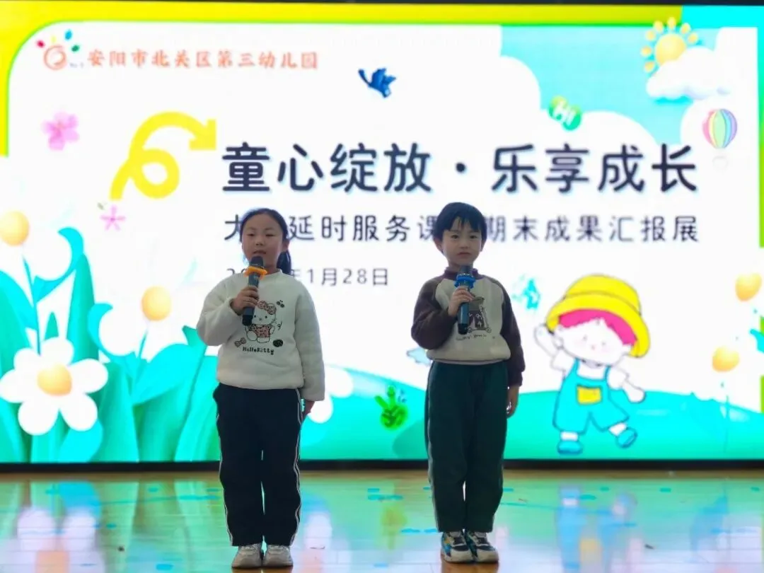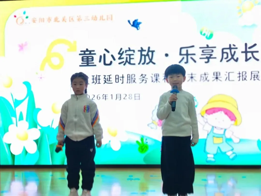 时光恰好,岁末相见。伴随着孩子们的欢声笑语,本学期延时服务课程在暖冬中圆满收官。2026年1月末,安阳市北关区第三幼儿园举行了以“童心绽放·乐享成长”为主题的延时课程成果汇报活动。
