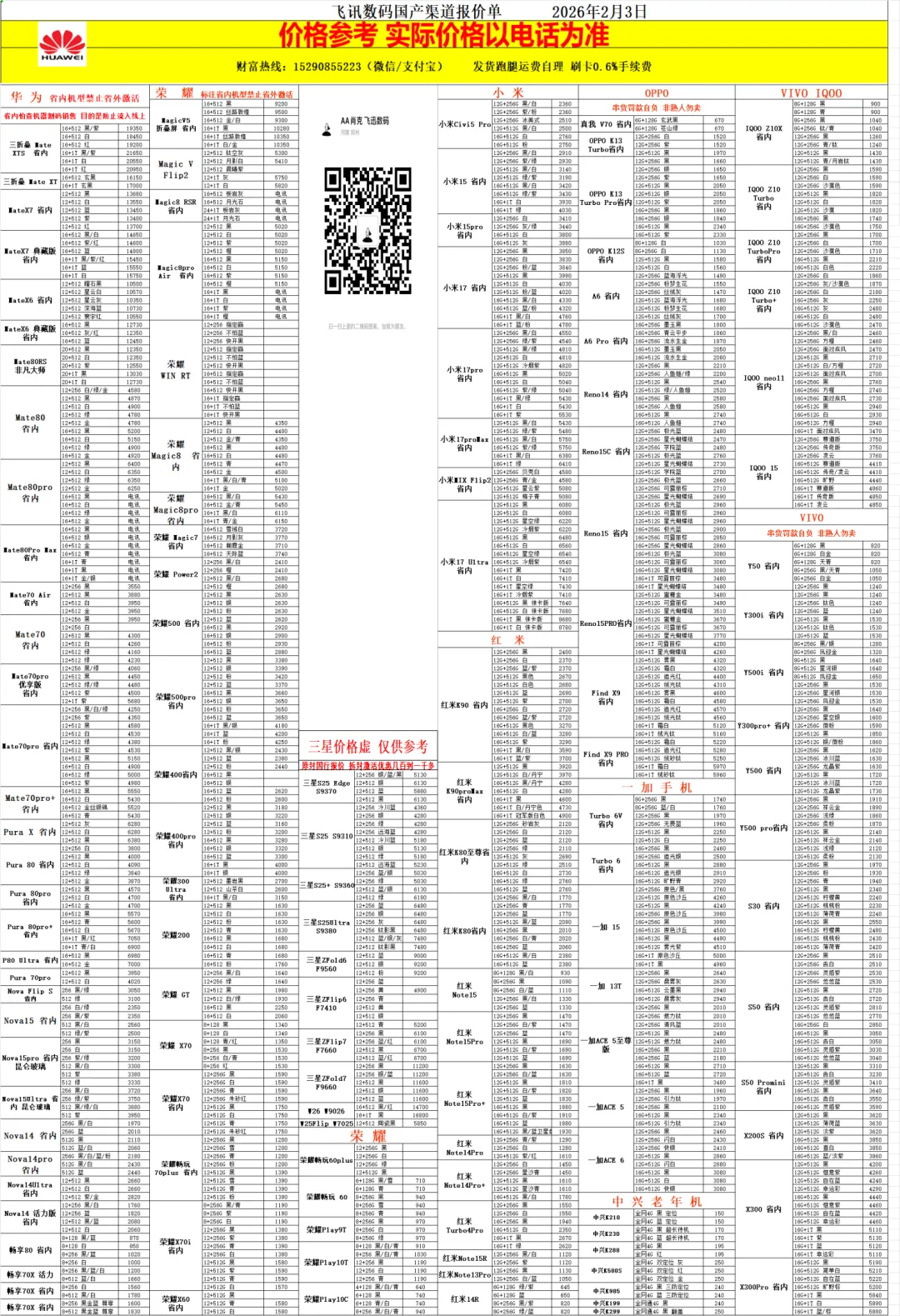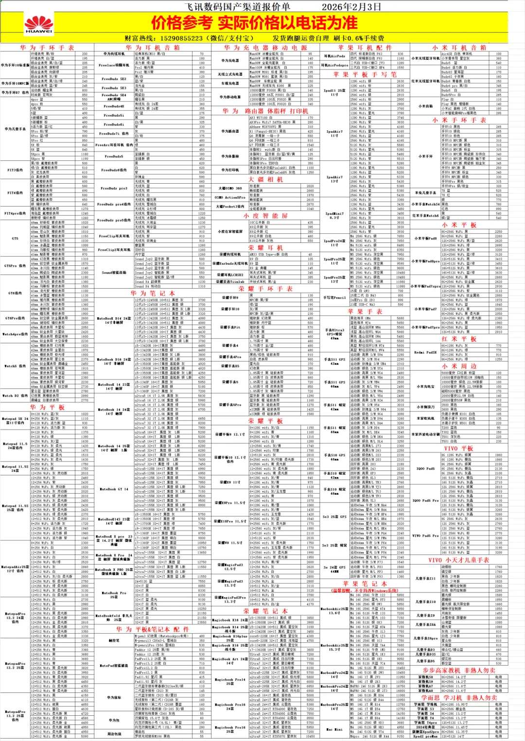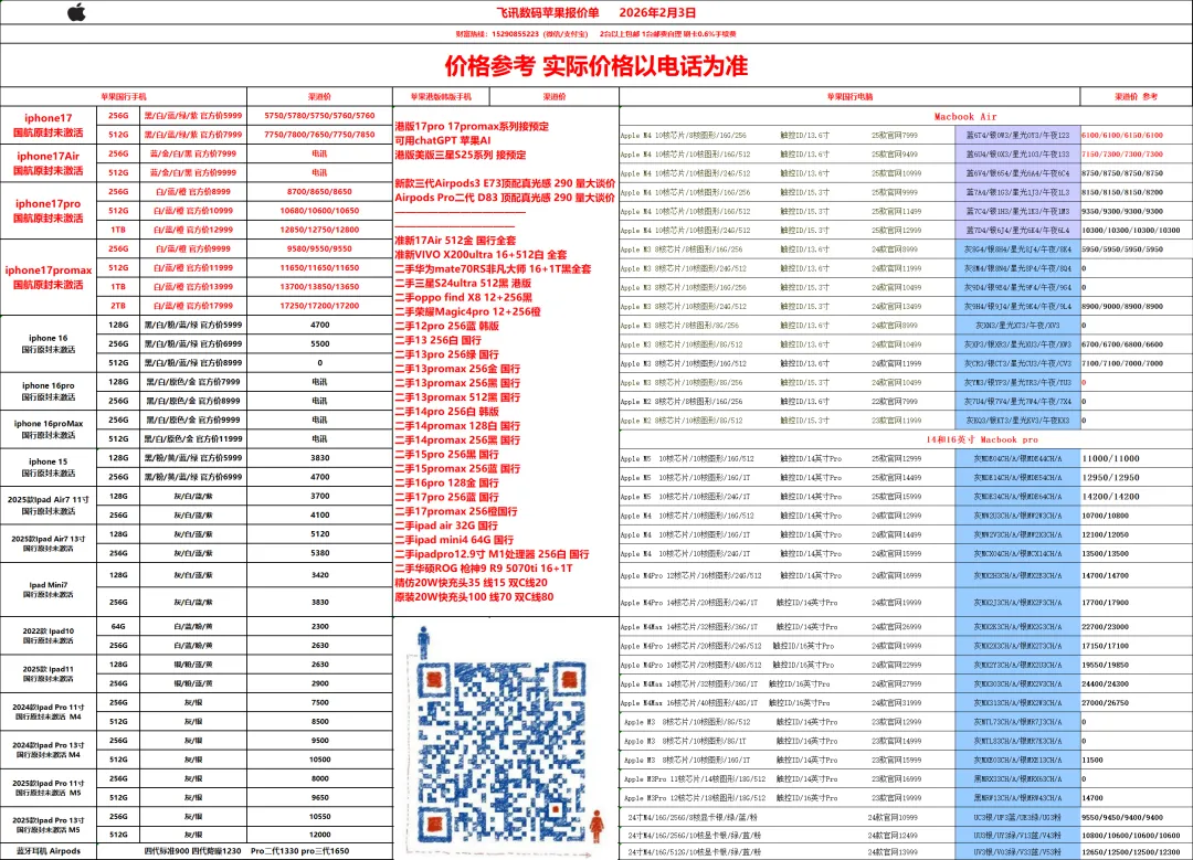 2026年2月3日渠道报价单 关注公众号查看每日报价