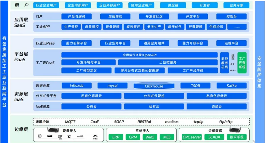 中色科技股份有限公司成立于2002年,现隶属于中铝集团,是我国唯一集有色金属加工行业规划、工程设计、装备研制、科研开发、工程总承包于一体的综合性企业,在大中型有色加工工程设计市场占有率超90%,先后完成20余项重大科研项目,获得400余项省部级及以上奖项。2021年整合设立智能技术公司,聚焦工业互联网平台建设,以“1个平台+2个数字化+1个自动化+101个工业APP”为核心,打造八大数字化应用与八大智能化场景,同时依托本地深厚产业积淀与专业技术团队,赋能本地有色行业企业数字化转型。1.数据可视化应用。构建全厂、车间、设备三级可视化体系,整合销售、库存、能源等八大模块,实时展示订单分布、能耗累积等核心数据,动态监控生产计划、设备状态并预警异常,可视化呈现箔轧机等关键设备OEE指标、轧制参数及健康状态,以多层级数据透明化支撑生产决策。2.设备智慧监诊应用。依托数字孪生与机理、机器学习模型,对铝箔轧机等主体设备开展智慧监诊。通过在电机、减速器等关键部位部署传感器,实时采集振动数据并生成波形图、频谱图,以雷达图直观呈现部件健康状态,实现寿命预测与维护建议推送,破解人工点检时效难题,降低非计划停机风险。3.能效管理应用。基于工业互联网与数字孪生技术,打造全厂能效、智慧空压、智慧退火炉三大模块。通过全介质能耗监测、产供平衡模型构建及大数据分析,实现能源计划编制、供需动态调控与能效对标,为重点用能单元推送负荷优化与参数设定策略,助力企业提升能源利用效率。通过工业互联网平台,部署三级数据可视化、设备智慧监诊、能效管理、安全生产管控等一体化解决方案。生产效率方面,通过设备预测性维护降低非计划停机风险,结合数据可视化优化生产调度;运营成本上,能效管理模块实现能源利用效率提升,能耗降低显著;产品质量依托全流程数据追溯与监控稳步提升;人员用工通过智能化管控减少人工干预,降低劳动强度;安全保障上,AI实时监控与二氧化碳灭火系统联动,事故隐患消除率大幅提高,有效避免安全事故。案例二:安徽楚江科技新材料股份有限公司供应链协同平台基于工业互联网平台搭建备件业务供应链协同平台,平台实现合规化快速采购与供应商自主报价接单,实现备件采购流程化、系统化管理,流程透明度提升,助力企业降本增效。平台服务楚江新材下属9个分厂及800余家供应商,供应商年成交订单超10000单,成交额超1.5亿元。备件采购工作效率提升了一倍以上,采购人员压减少70%,有效保障了生产企业设备平稳运行,降低了企业备件库存。