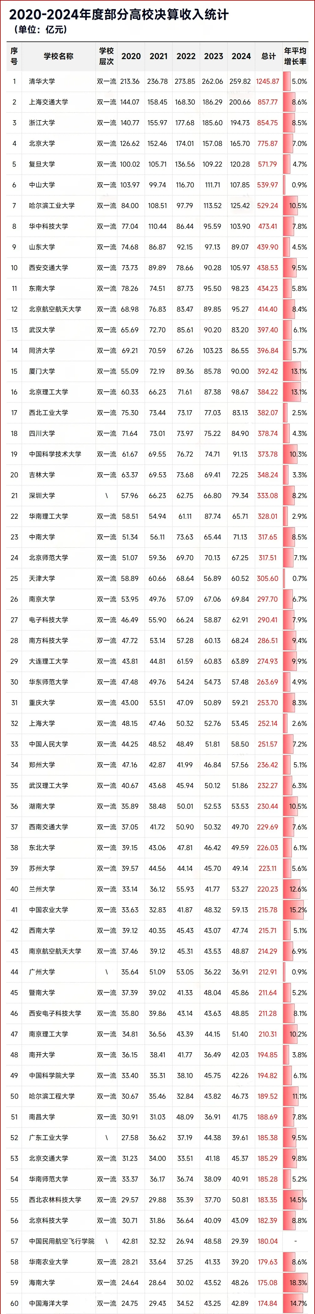 而从2020-2024年度全国高校