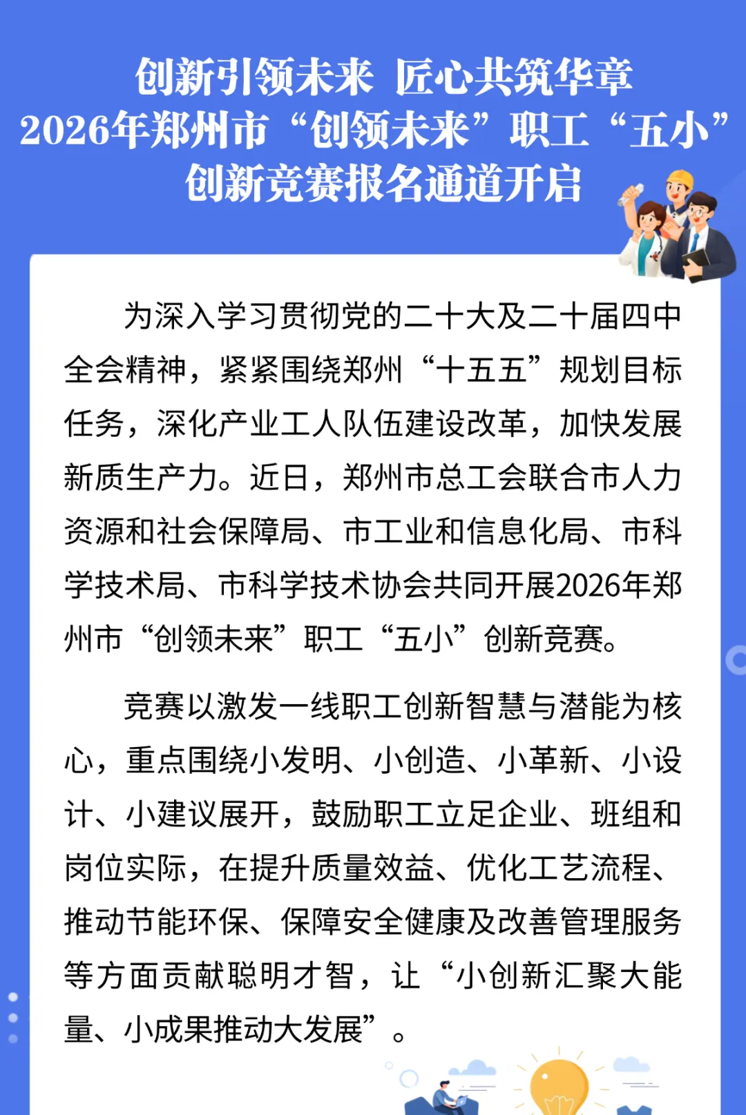 最高2万元奖金!2026郑州职工创新竞赛开启报名,速来参赛