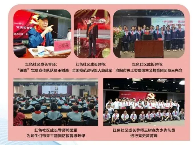 聘请退休老党员、老军人郭武军,老干部王先念为红色社区成长导师,通过上党史课、国防教育课、爱国主义教育课等,定期开展“听党话,跟党走”红色教育活动。