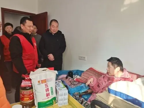 随后,商会一行又来到了王彦峰的家中。王彦峰是辖区的一名党员,却身患渐冻症,而他的妻子也刚做完十二指肠癌症手术,家庭经济陷入了极度困境。卢希忠会长紧紧握住王彦峰的手,关切地询问他的病情和治疗情况,鼓励他要保持乐观的心态,积极与病魔作斗争。同时,商会成员也将慰问品一一送到王彦峰夫妇手中,并表示商会将继续关注他们的生活状况,尽最大努力提供帮助。
