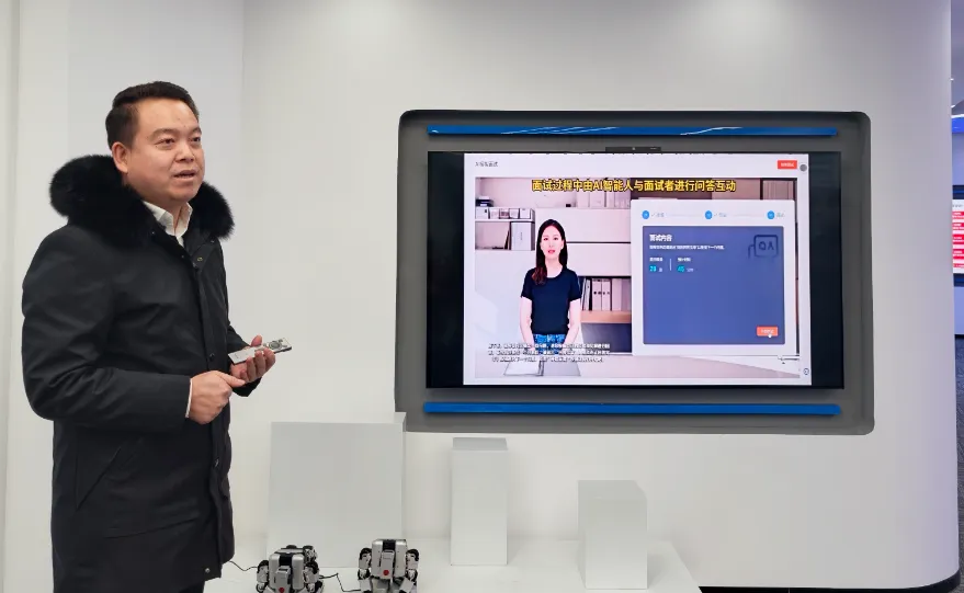 他一边讲解一边演示。“这个自主研发的AI服务平台集成课程学习、就业资源、岗位画像等功能,并引入AI测评系统,通过笔试与数字人面试结合的方式,多维评估学员能力。测评过程采用实名认证、防作弊监控等技术,确保结果客观公正。学员结业后,平台根据学习数据与企业需求自动推送匹配岗位,企业亦可直接获取推荐学员名单,打通培训—就业‘最后一公里’。”