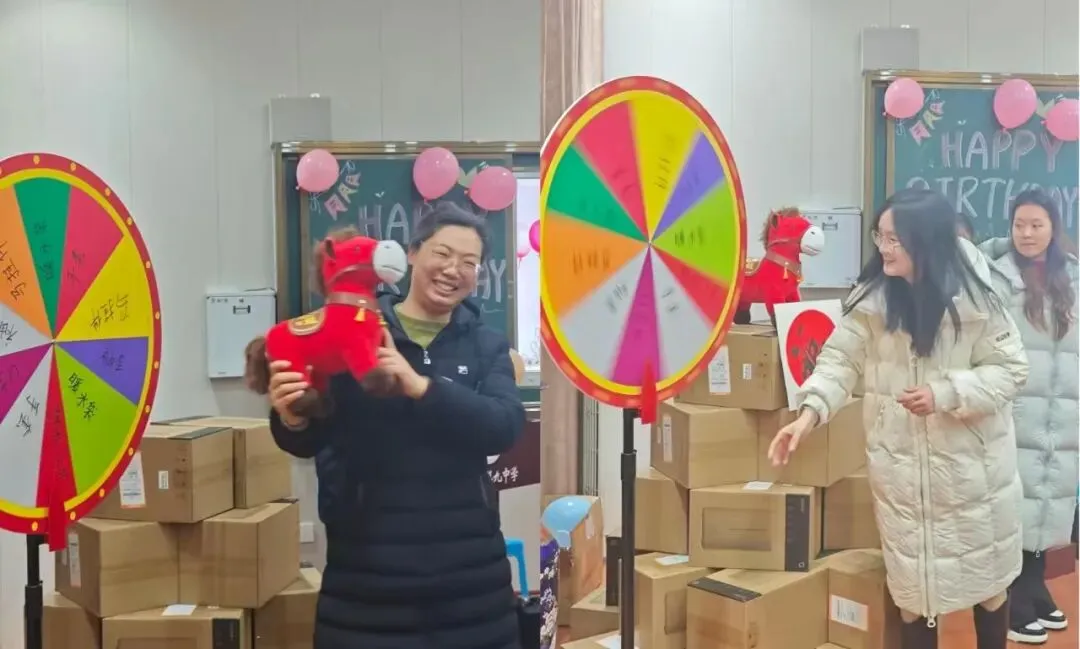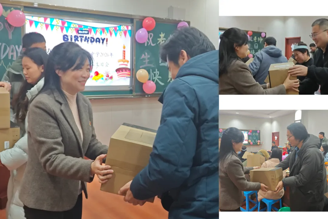 游戏过后,学校领导为寿星老师们送上了精心准备的生日礼品。每一份礼物都承载着诚挚的敬意与关怀,让常年耕耘在三尺讲台的老师们,在欢声笑语中更添一份温暖的慰藉。