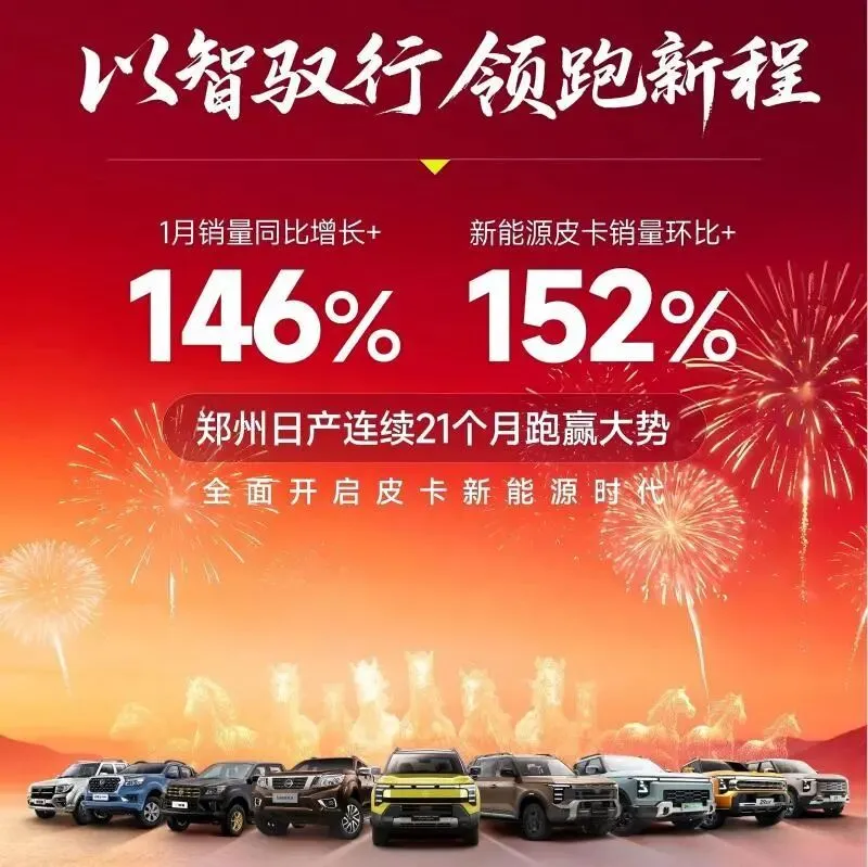 2026年,国内皮卡市场从增量竞争进入存量博弈阶段,新能源势力成为颠覆市场的关键力量,市场格局的变化,让国内皮卡车企面临更大的压力。而1月销量的强势增长,为郑州日产在2026年的新征程奠定了基调,我们期待,郑州日产能以更丰富的产品矩阵和更敏捷的市场响应,开启新一年的向上篇章。