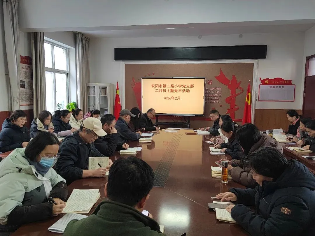 2026年2月3日,安阳市钢二路小学党支部开展了2026年二月份主题党日活动,全体党员教师参加了活动。
