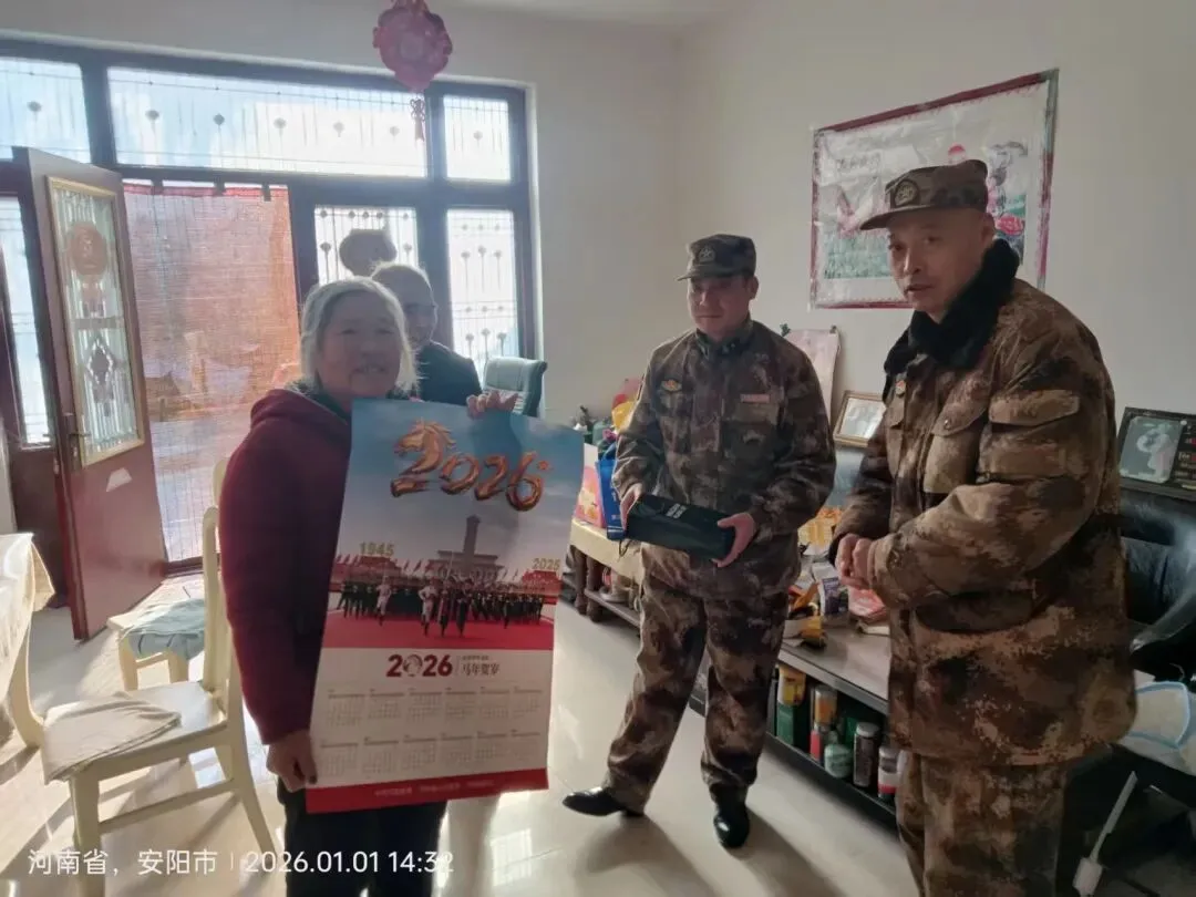 ①2026年1月1日元旦安阳市退役军人长城志愿服务队走进辛庄村慰问革命烈士军属王金喜军属送去慰问品和关爱。