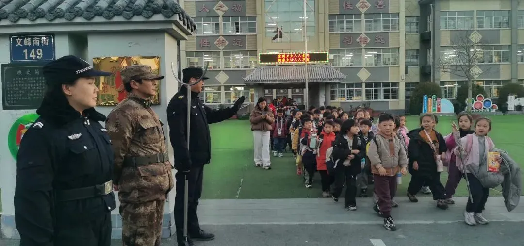 ⑤1月9号下午四点半安阳市退役军人长城志愿服务队开展守护校园执勤活动。