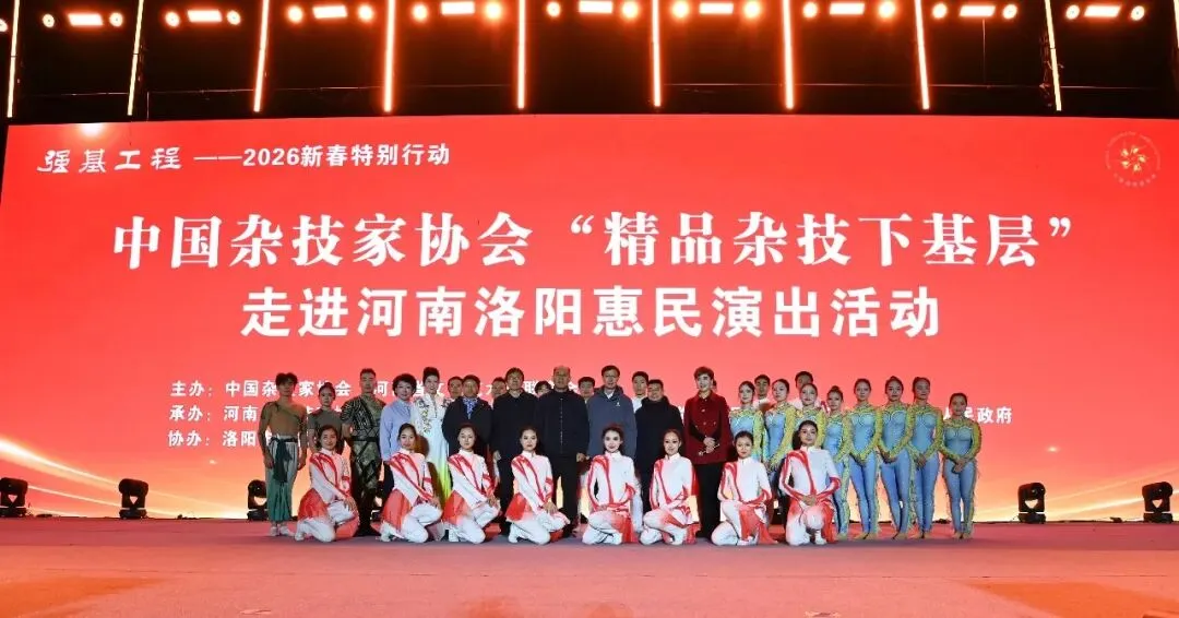1月10日晚,“强基工程——2026新春特别行动中国杂技家协会‘精品杂技下基层’——走进洛阳市慰问演出”活动在洛邑古城举行。中国杂协领导唐延海,省文联领导方启雄、李明,市文联党组书记柴洪涛、副主席邵拨云,老城区委书记赵书政等参加了活动。(点击查看详细信息)
