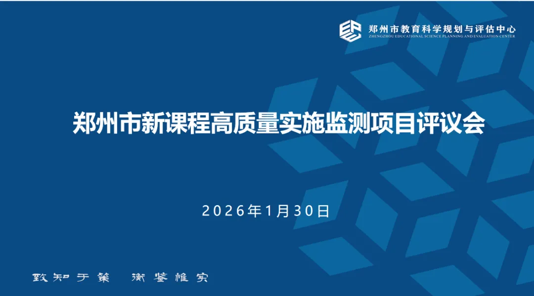 为系统总结郑州市新课程高质量实施监测项目成果与实施经验,汇聚专家智慧开展综合评议,进一步凝聚共识、明确方向,持续推动全市中小学新课程高质量实施,1月30日下午,郑州市新课程高质量实施监测项目评议会在市教育科学规划与评估中心(以下简称“市教评中心”)顺利召开。郑州市教育局总督学曹章成,市教育科学规划与评估中心党总支书记、主任寇爽,副主任姬文广出席会议,市教评中心教育监测和评估研究室主任任保国及该室全体教研员参加会议;评审专家、项目组专家十余人通过线上形式参会。
