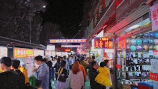 校门口夜市街的傍晚依旧热闹,上学时期朋友挤在热闹的人流里,分一串烤面筋,举一瓶冰镇海碧,从街头晃到街尾,青春里那些细碎的欢喜与烦恼,都消散在腾腾的烟火气中。如今店铺招牌换了一茬又一茬,但拐角的灯箱,总亮着暖黄的光,像某个不会失约的约定。