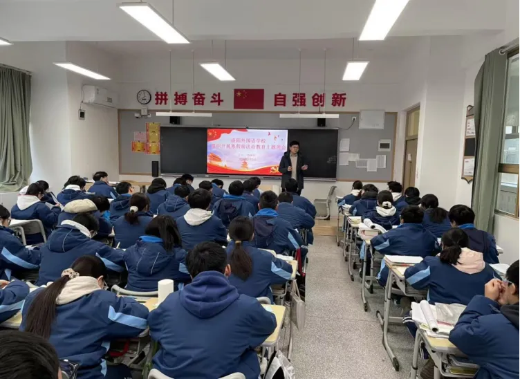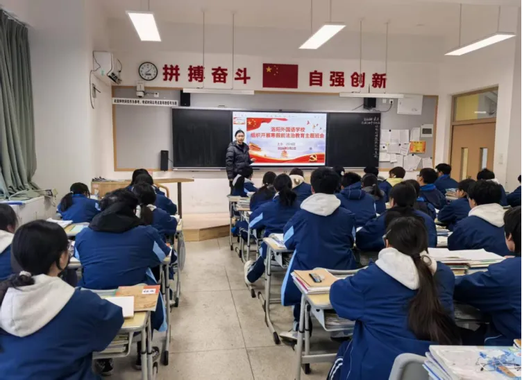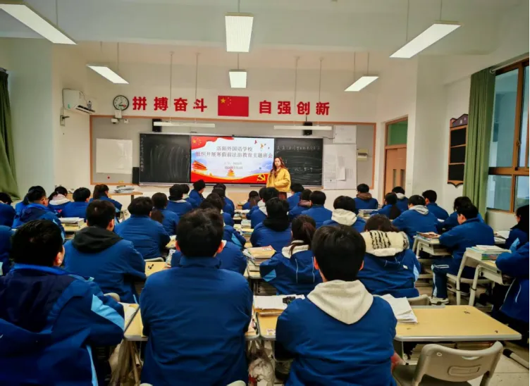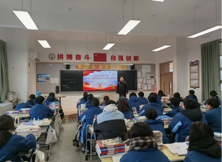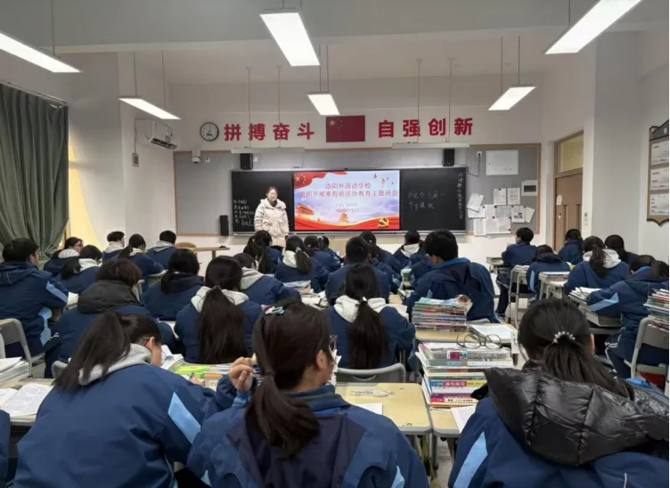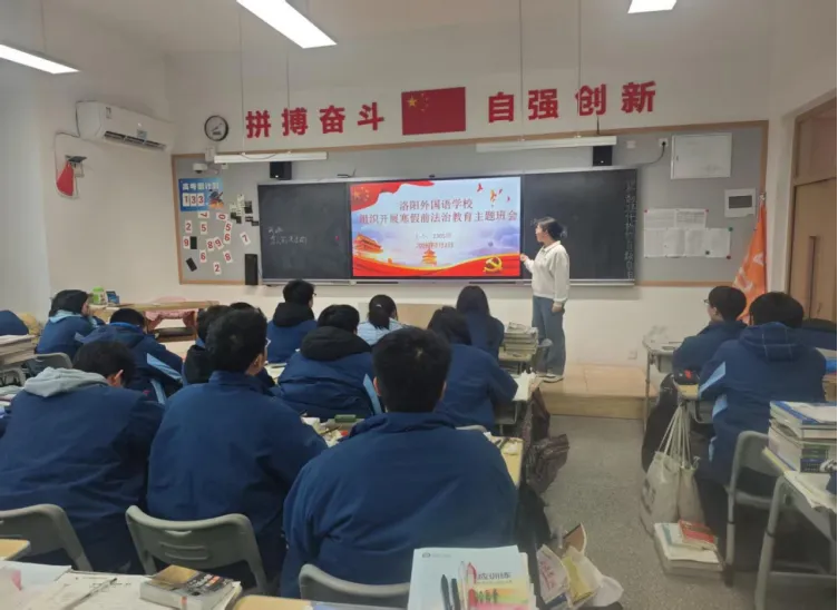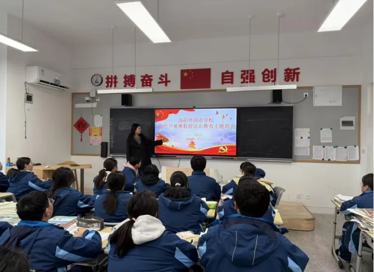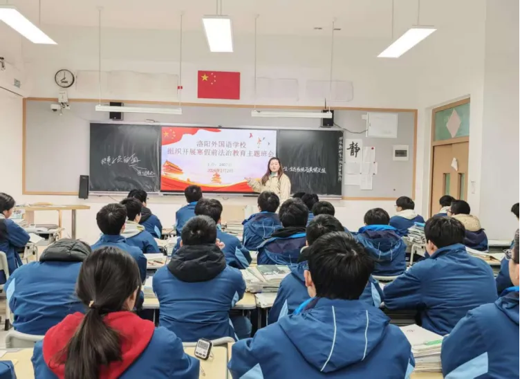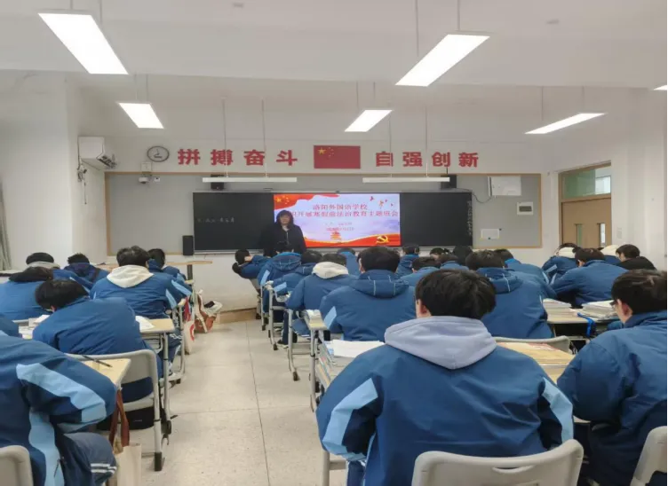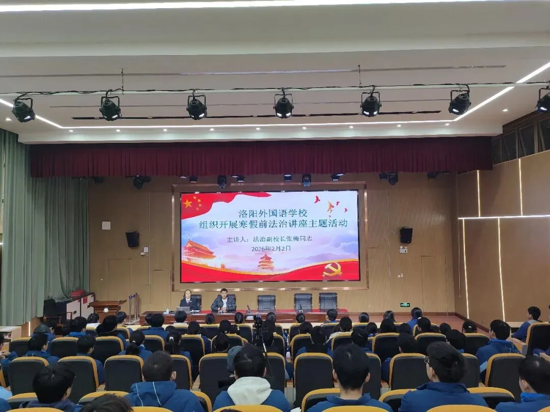 为深入学习贯彻习近平法治思想,落实洛阳市教育局关于寒假前法治教育工作要求,切实提升学生法治观念与自我保护能力,洛阳外国语学校于近期扎实开展寒假前法治课堂最后一课系列活动,通过 “专业讲座 + 主题班会” 双轨并行,为学生假期安全筑牢法治防线。
