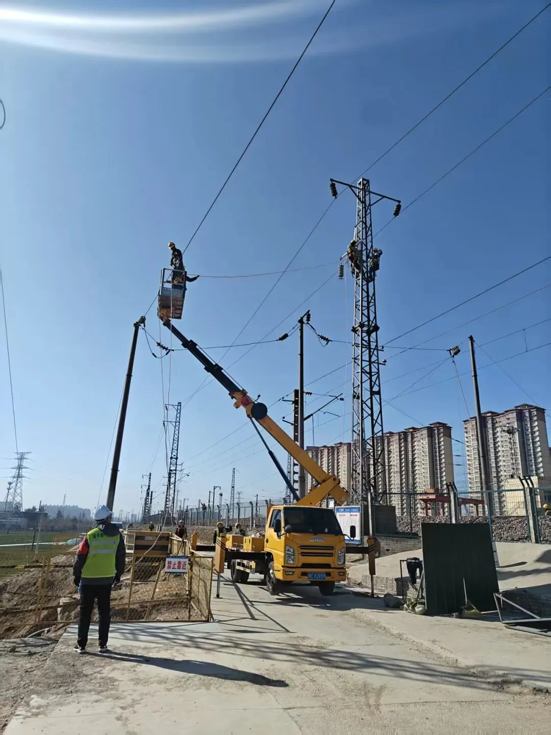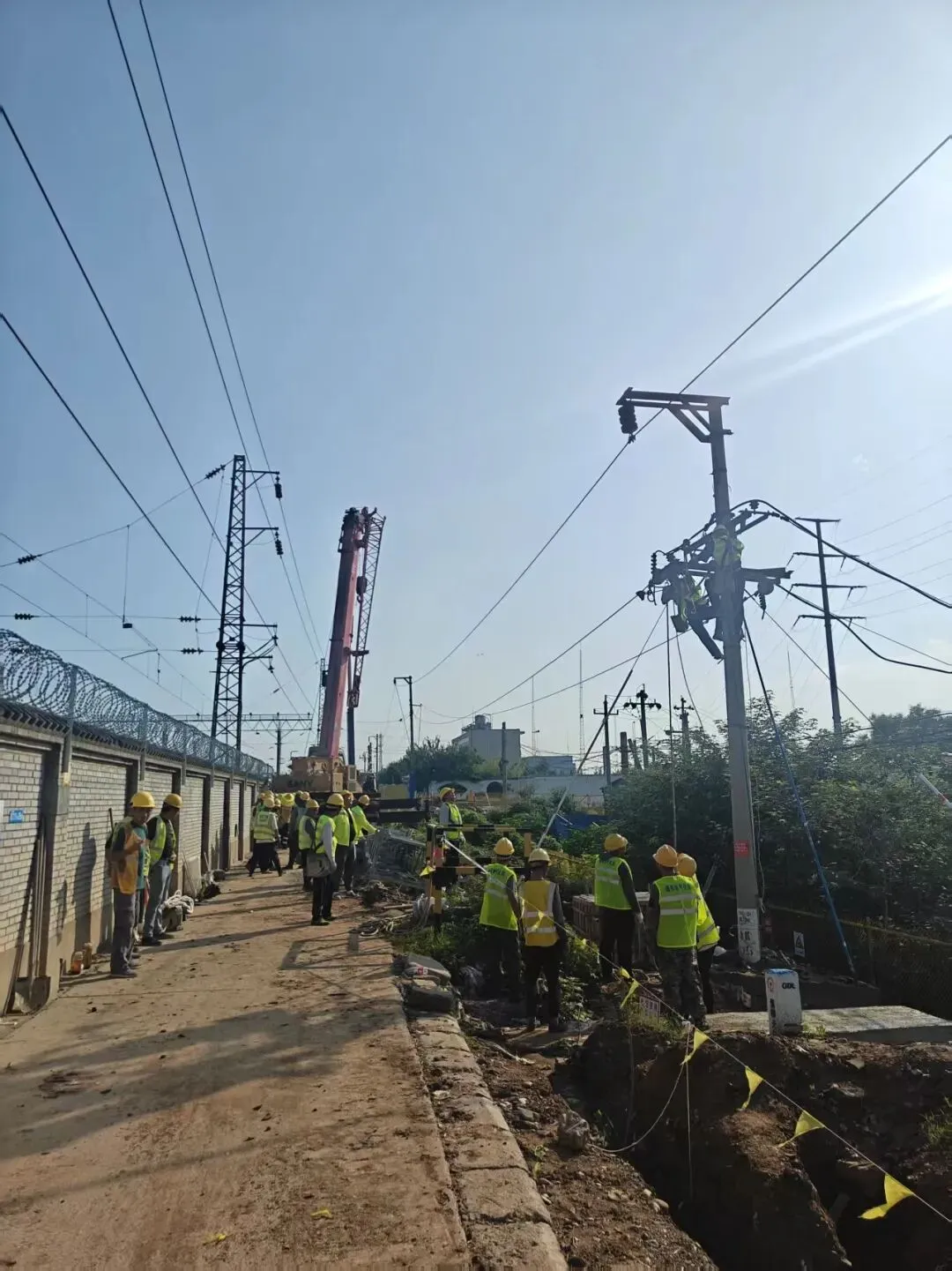 一是复杂线缆迁改。需对密集光电缆进行精细排查,成功拆除废弃地方通信光缆十余处,确保施工安全与线路畅通。二是极端天气考验。项目遭遇罕见雨季,累计降雨达32天,期间多次因暴雨预警被迫暂停土方作业,导致工期一度停滞2个多月。三是环保管控协调。施工曾因地方环保管控,一度禁止土石方作业。经指挥部积极多方协调,最终以“民生工程”的名义获得理解与支持,恢复了关键工序的施工。四是高压线路迁改。涉及27.5KV供电线及10KV电力线的迁改方案,技术要求高,协调难度大。