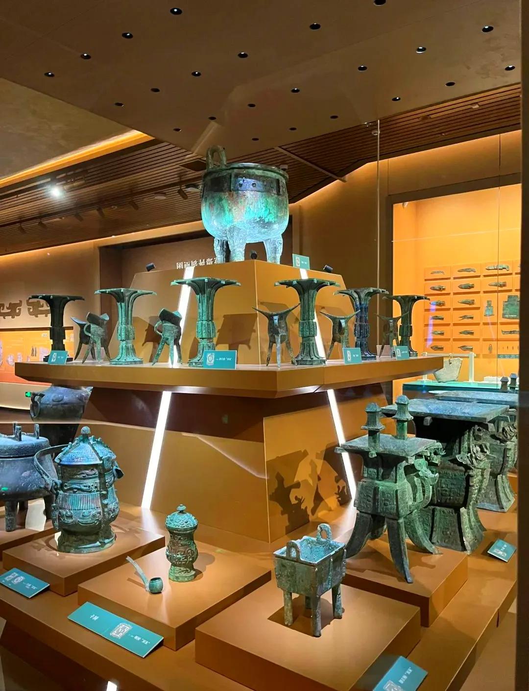 转到青铜器的展区,光线便愈发庄重了。那尊闻名世界的后母戊鼎(司母戊鼎),需得仰视才见。鼎身上铸着狰狞的饕餮,盘着回旋的云雷,沉默地诉说着一个时代的威严与力量。可以想见,三千年前,它被铸造出来时,曾经历过怎样烈火的焚烧,怎样宏大的典礼。如今,火熄了,人散了,唯有它,以及无数精美的礼器、兵器、酒器,还留在这里,身上的绿锈,是时光赠予的、独一无二的勋章。