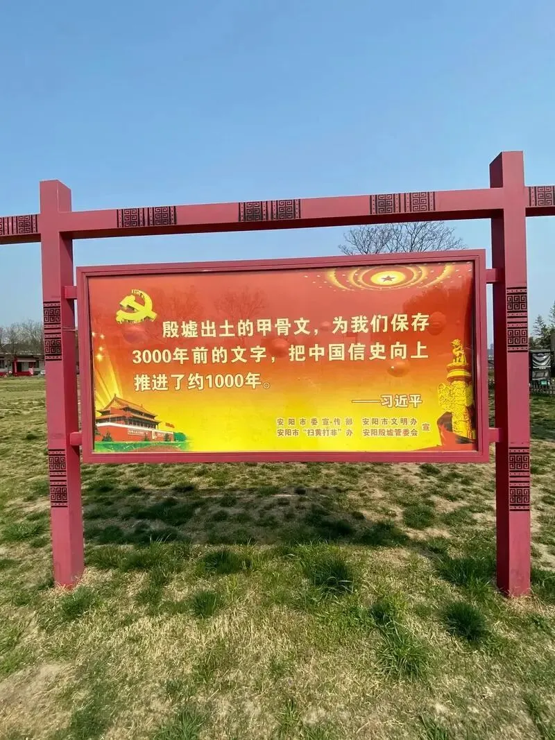 车停在安阳城西北,洹水静静地流着,水色是那种看了多少朝代兴亡的、沉沉的浊黄。迈过那道门槛,便像是跨进了一个不同的时间。风在这里,似乎也格外的缓,格外的沉,带着泥土与远古的、分辨不清的气息。周遭不再是都市的喧嚷,而是一种广阔的、被岁月压实了的寂静。这便是殷墟了,商王朝的故都,一个在史书上读了千遍,却不及站立片刻来得震撼的地方。