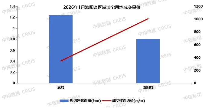 2026年1月,洛阳市商品住宅销售面积TOP10项目合计销售面积为1.63万平米,其中TOP10的销售面积门槛值为0.07万平米。中成·水岸绿洲以0.35万平米的销售面积排行首位,常绿·林溪宸院以0.25万平米的销售业绩位列第二,中成·颐尚苑以0.22万平米的销售业绩位列第三。中成·天樾·水岸绿洲三期,总占地面积约151亩,总建筑面积约43万方,绿地率31%,容积率仅有3.48,规划15栋高层,11栋洋房,周边2公里范围内步行即达中成百货、伊洛中小学、滨河公园、植物园;83-176㎡精工匠作,矢志打造中成集团最具时代影响力作品,择址得天独厚的资源宝地,坐拥洛河与城芯的天赐坐标,延续天系一脉“高起点、高品质、高标准”的建造体系,天樾,为中成重新定义下一代人居范本。2026年1月,洛阳市共成交各类用地14宗,合计建设用地面积65.05万平米,规划建筑面积52.55万平米。其中,住宅用地成交2宗,规划建筑面积2.05万㎡;工业用地成交10宗,规划建筑面积49.78万平米;公共设施等其它用地成交2宗,规划建筑面积0.71万㎡。2026年1月,全市成交2宗住宅用地中,嵩县和汝阳县各成交1宗,同为小面积地块,且均由当地民营房企底价摘地。➤政策解读