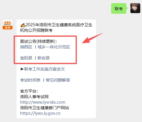根据《2025年洛阳市卫生健康系统医疗卫生机构公开招聘联考工作实施方案》规定的程序和办法,现将2025年洛阳市卫生健康系统医疗卫生机构公开招聘联考涧西区面试环节相关事宜公告如下: