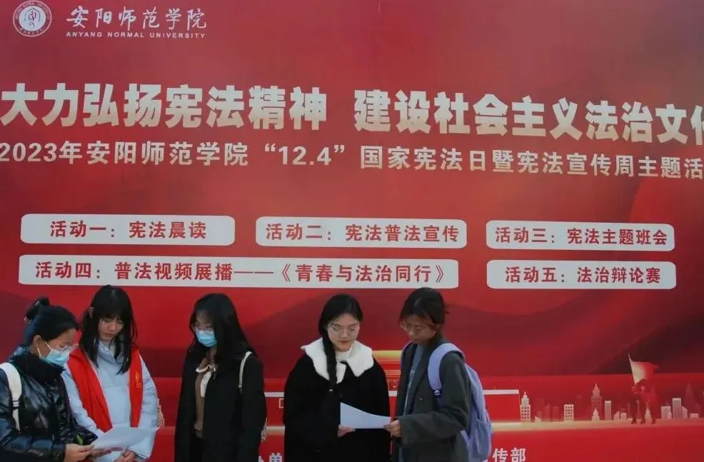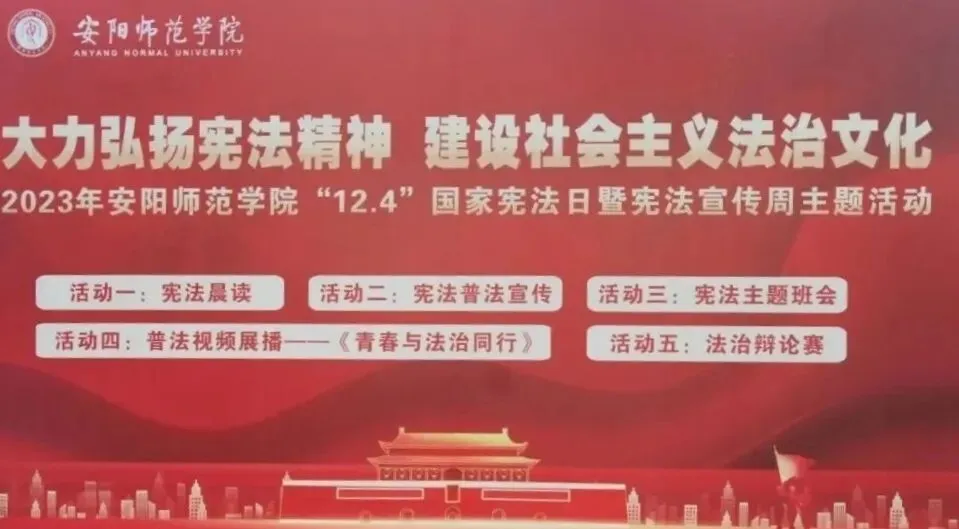 国无法不治,民无法不立。宪法是国家的根本法,是治国安邦的总章程,是党和人民意志的集中体现,具有最高的法律地位、法律权威、法律效力。今年的12月4日,是第10个“国家宪法日”。为帮助同学们树立宪法意识,增强社会主义法治观念,外国语学院举办了以“大力弘扬宪法精神 建设社会主义法治文化”为主题的宪法宣传周主题活动。