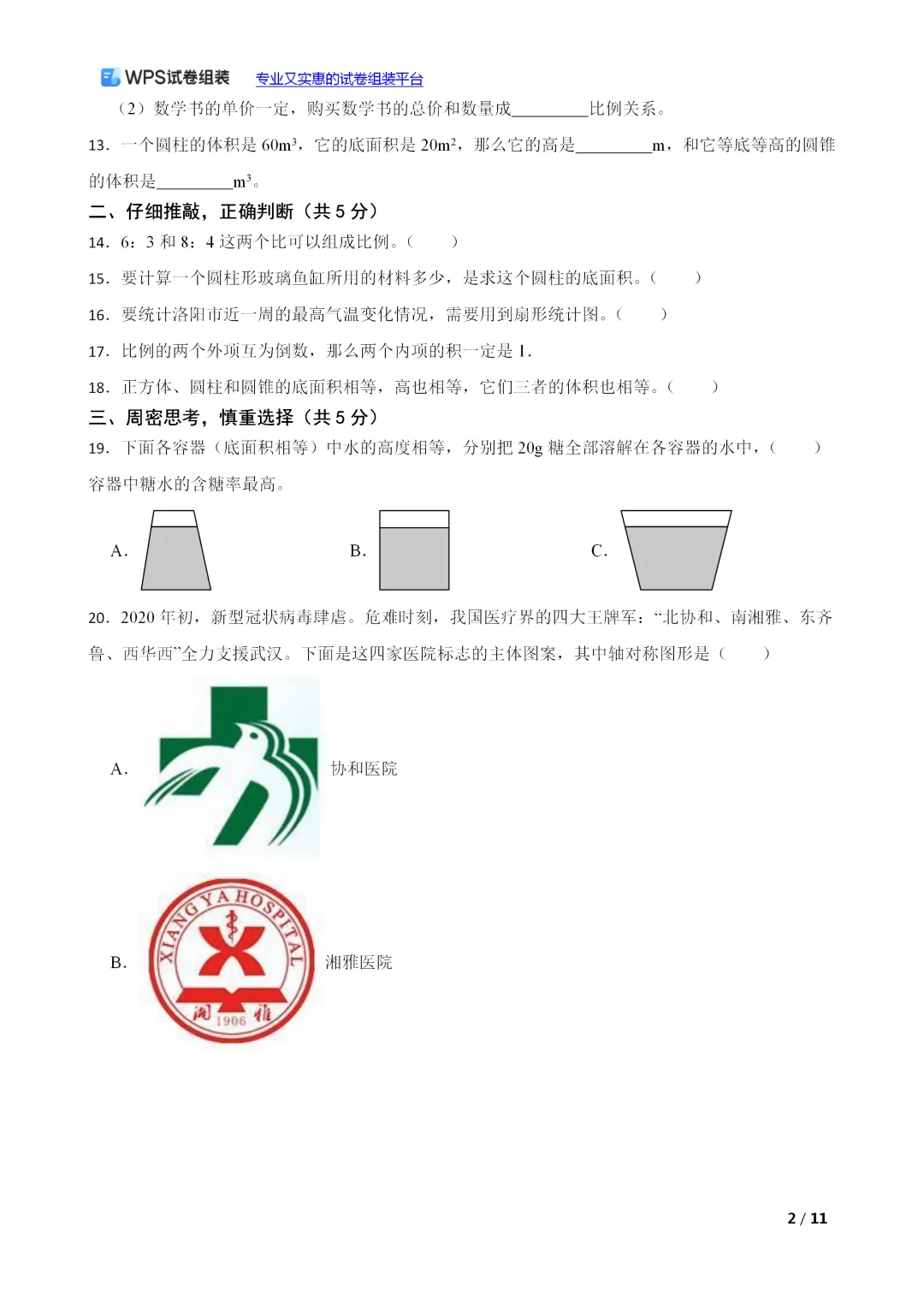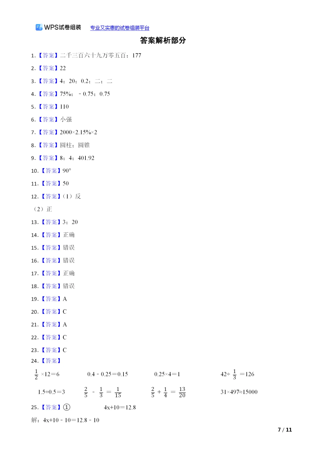 (小升初真题)山西省太原市晋源区2023年小升初数学试卷
