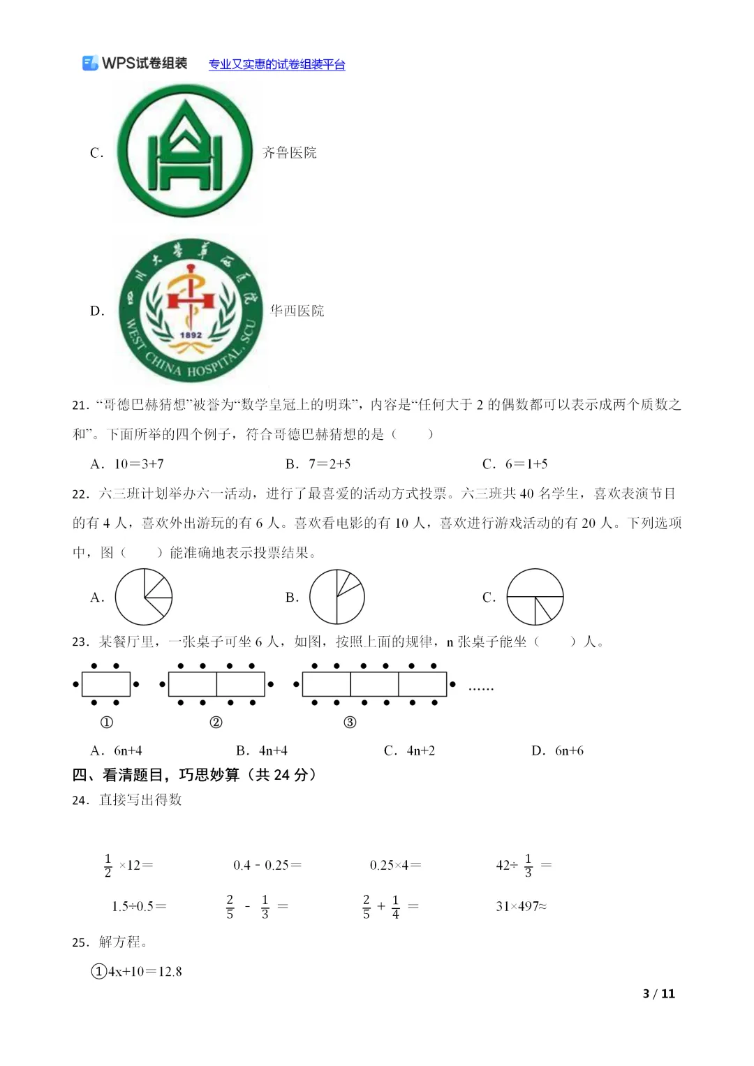 (小升初真题)河北省沧州市青县2023年小升初数学试卷