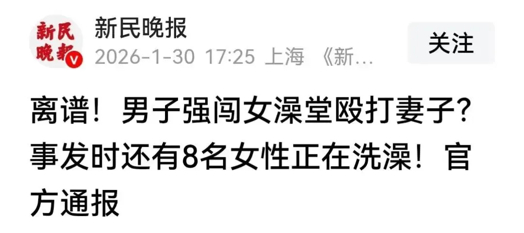 关键是男子的妻子也在洗澡中,总共九个女子洗澡,他进入女洗澡池,一眼就认出来了自己的妻子,找到妻子在女洗澡池,打了他妻子六七分钟。