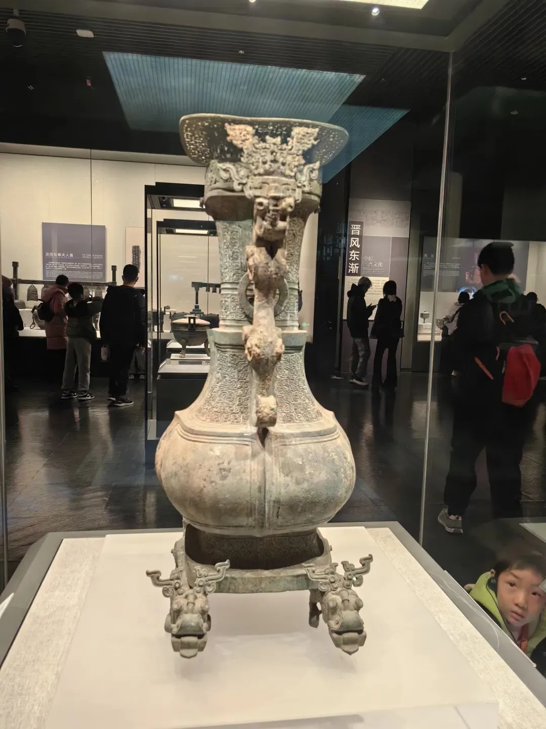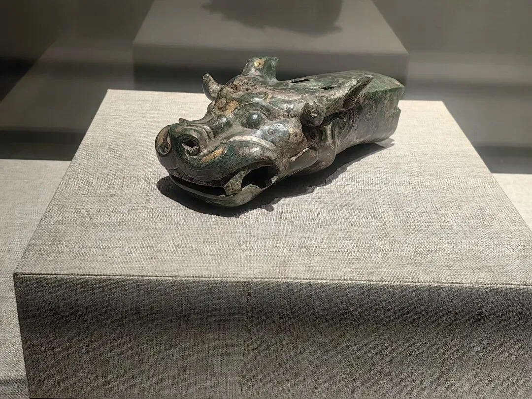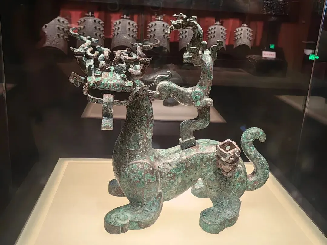 楚人好巫的证明,龙首,虎身,龟足,蛇尾,还吐舌头,给青铜的庄重添了几分俏皮。