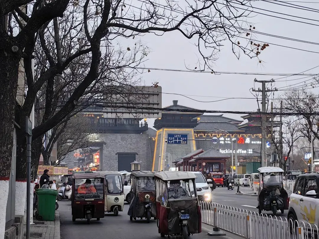 道路两边的梧桐树叶还未落尽,阳光透过枝叶洒在街道上,窄窄的街道,破旧的房子,让人仿佛回到了过去,从前车马慢,时光也慢。