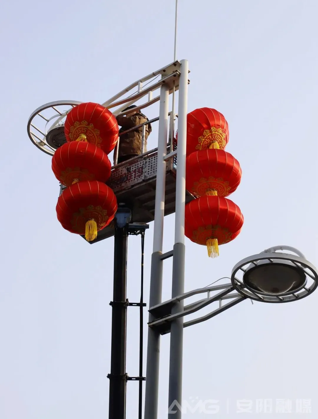 作为本次新春亮化的核心,红灯笼安装工作于2月1日正式启动,12名施工人员分为2组,配备2台高空作业车同步推进,高效保安装进度。本次悬挂灯笼聚焦中华路与文峰大道两条城市主干道,文峰大道采用高低错落式安装,中华路则以平行安装为主,红绸摇曳间尽显传统年味。