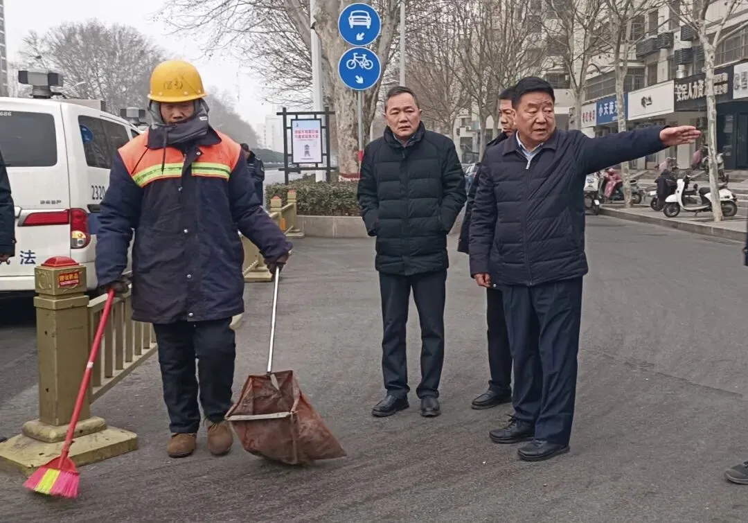 春节临近,为营造“干干净净过大年”的节日氛围,推动做好春节期间服务保障工作,2月3日上午,安阳市城市管理局党组书记、局长宋有生带队调研检查节前市容秩序和环境卫生管理工作。局一级调研员张占方、市园林环卫中心副主任蔺晓军、市城市管理保障中心四级调研员、城市清洁行动专班负责人陈永赶等陪同。