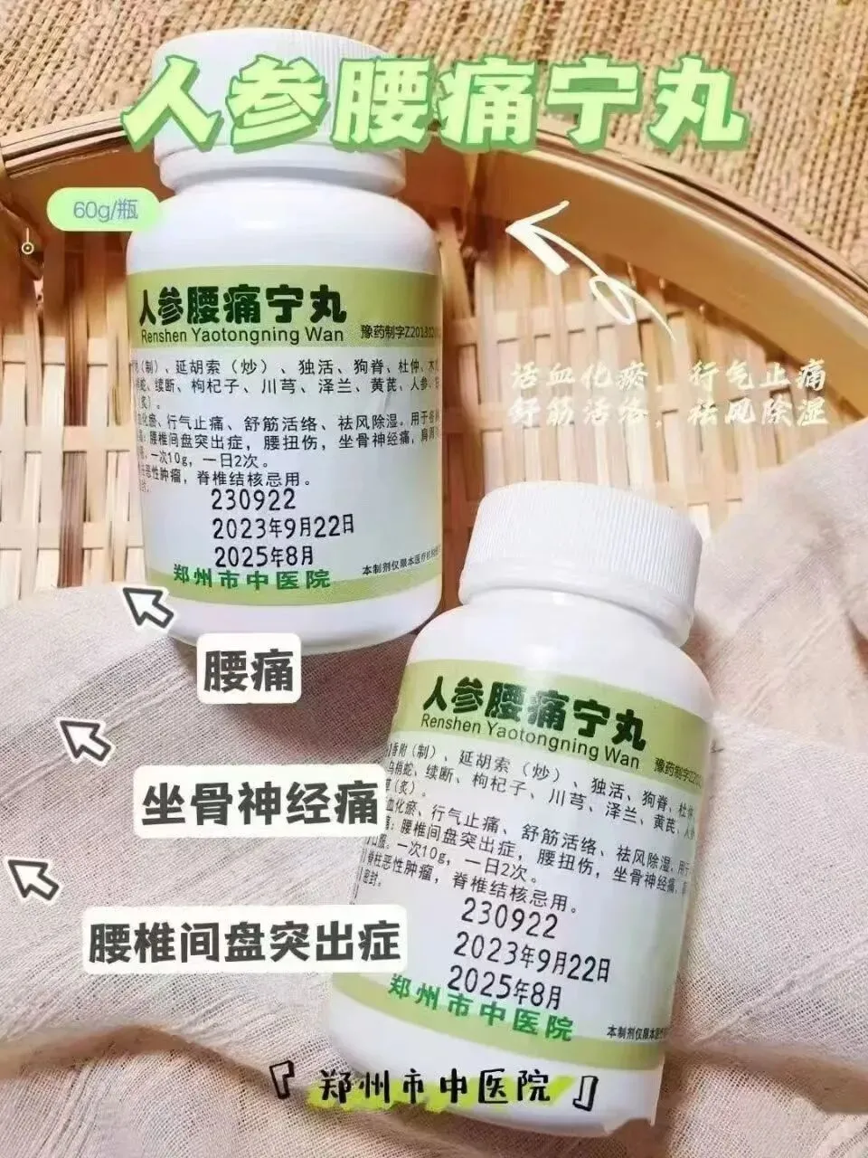 ✅ 人参腰痛宁丸源自郑州市中医院院内制剂