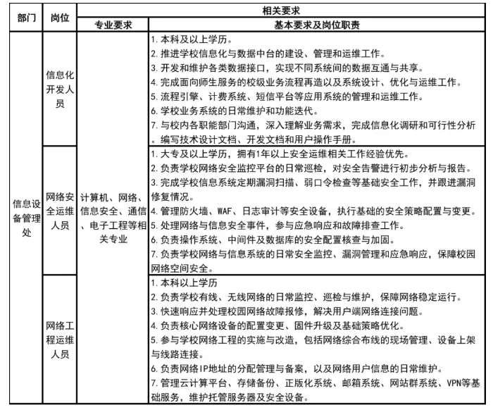 根据学校工作需要,现面向社会公开招聘若干名技术人员。