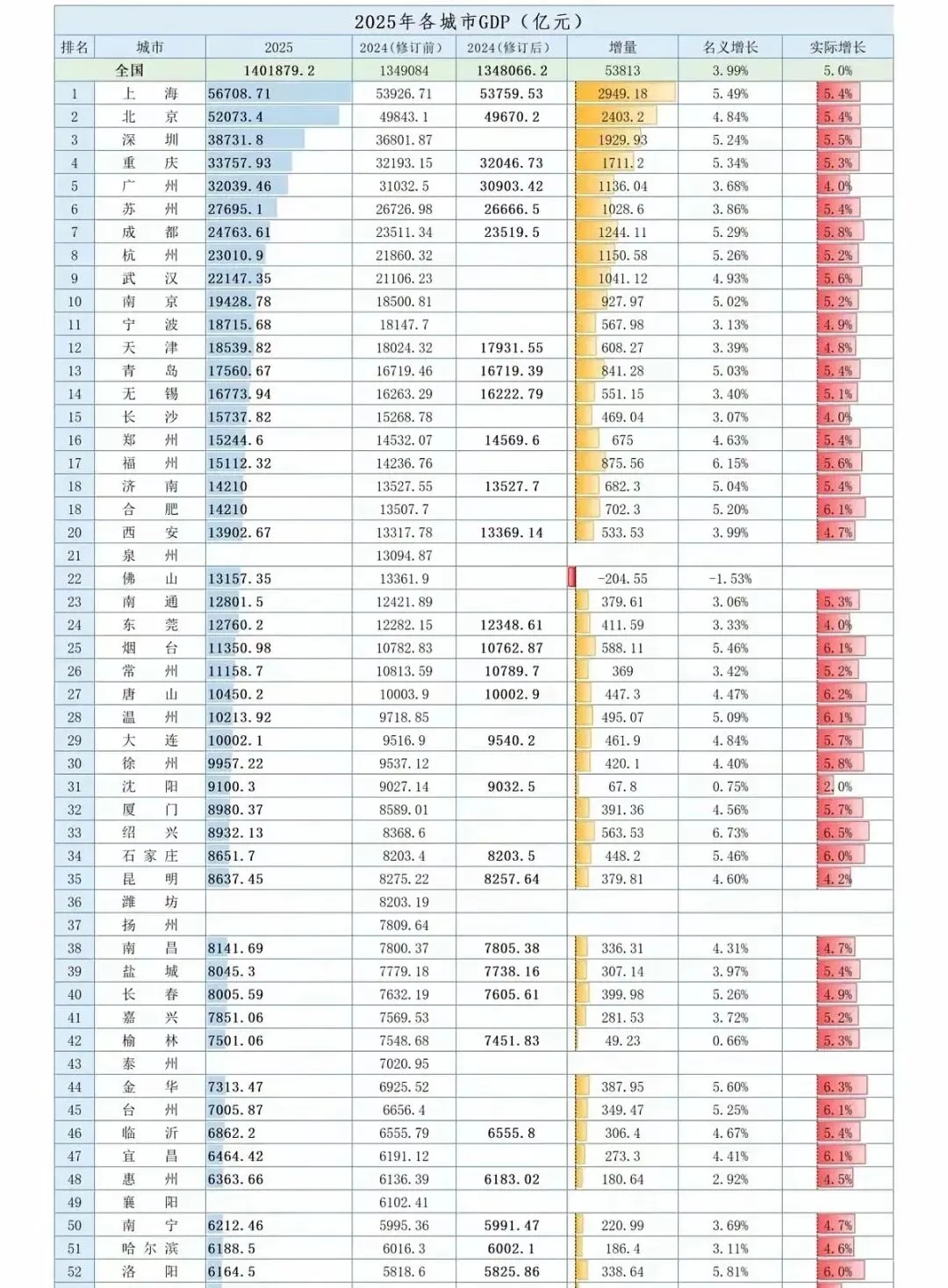根据洛阳市统计局1月27日发布新闻,洛阳2025年经济总量首次突破6000亿大关,达6164.5亿元,按不变价格计算,同比去年增长6%。其中第一产业增长3.9%,第二产业增长6.2%,第三产业增长6.0%。同时,令人可喜可贺的是,洛阳自2021年起至2025年,经济总量在全国排名终于停止下滑脚步,从2024年的54名(因威海未计,实际55名)上升至52名,虽距离2020年第45名仍有差距,但总算不再下跌了。而且2025年,洛阳还超过了老对手“襄阳”,去年在网络上两地网友争执大半年的结果终于盖棺定论。从洛阳产业机构增速来看,第二产业增速喜人,说明洛阳高质量制造业在向前发展,当然其中也包含部分采矿业,第三产业服务业增速同样优秀,说明本地文旅的风口依然还在。首先,中州时代三四期会在2026年陆续投产,会直接增加150+,其下游配套设施企业也会增加几十个,这一块应该在200左右。其次,孟津区大乙烯项目会和焦洛平高铁会快速推进建设,这些大基建会带来GDP进一步增长。再者,以中航光电为代表的洛阳“智造”也会持续加大投入和投产。最后,洛阳文旅市场仍会延续几年。河南省在十五五规划建议中明确提出,重点发展洛阳和南阳两个省域中心城市原文是这么描述的:提升洛阳中原城市群副中心城市、南阳省域副中心城市发展能级。支持洛阳加快建设国家重要创新高地和先进制造业基地、现代生态宜居城市、国际文化旅游名城、国际人文交往中心。南阳2025年全年地区生产总值5167亿元,这在河南也是相当不错的成绩。南阳地理位置优越,地处河南西南部,同湖北接壤,这里是盆地,人口众多,周边200公里内没有竞争对手,河南选择重点培育南阳是为了打造河南南部的重要增长极。接下来,我们再看河南省和隔壁郑州2025年经济发展情况。2月3日,郑州2025年经济数据正式发布,全年地区生产总值达到15244.6亿元,同比增长5.4%,高于全国5%的平均增速,经济总量位居全国第16位。从增量来看,郑州2025年增长712亿,略低于合肥,虽然拉近了与长沙的距离,但是身后的福州已经虎视眈眈,双方之间的差距缩小至132亿,稍有不慎便会被福州反超。郑州、福州、济南、合肥与西安五大省会城市处在全国第16-20位,竞争异常激烈。2025年,温州和大连先后晋级,全国万亿城市扩容至29座,而郑州在2018年便与宁波一道跻身万亿GDP阵营,领先了福州、济南、合肥、西安两年,如今却处在同一梯队,郑州的经济发展明显放缓。2025年河南全年经济总量6.66万亿,居全国第6、中部六省第1。2025年河南实际增速5.6%。