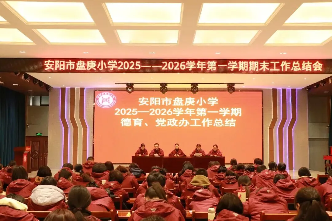 会议伊始,党政办主任张慧娟宣读了《安阳市教育局关于做好2026年中小学寒假有关工作的通知》,明确假期工作要求。随后全体人员观看学期工作回顾视频,各部门领导依次总结部署工作。李梅副校长复盘德育与党政办工作并开展师德师风专题学习,郭锦龙副校长梳理总务安全、体卫工作并强调假期安全要求,赵江凤主任总结教学工作并带领学习拒绝有偿补课,筑牢廉洁从教防线。