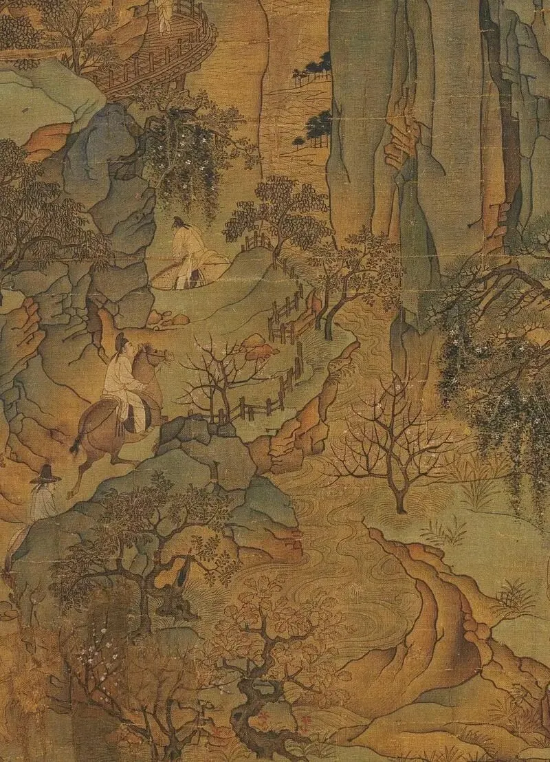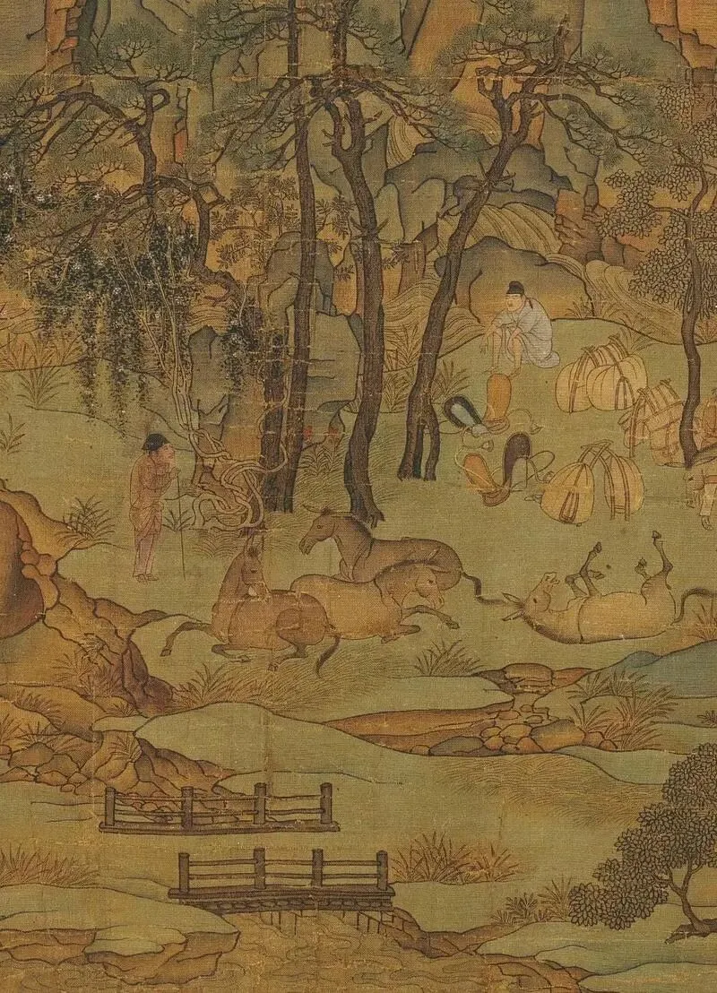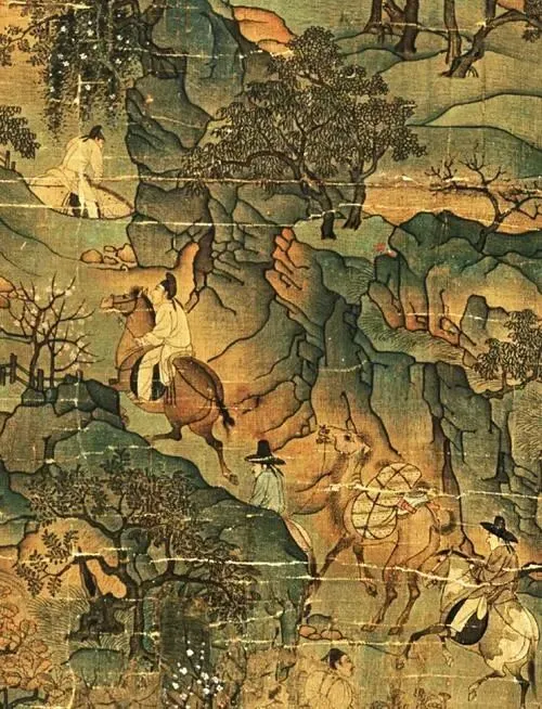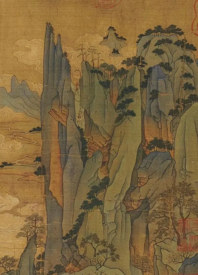 唐李昭道《明皇幸蜀图》:现藏于台北故宫博物院,是一幅绢本设色画。画中描绘了安史之乱时,唐玄宗逃亡四川的情景。