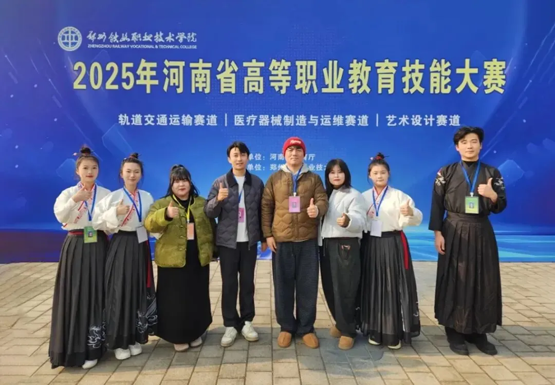 在本次大赛的"艺术设计"赛项中,洛阳科技职业学院艺术设计参赛团队再创佳绩。由薛佳豪、孙毓臻、王梦瑶、孟梓涵四位同学组成,金卓、伊永华老师指导的艺术设计团队,凭借扎实的专业功底与出色的综合表现,再次斩获金奖。这已是艺术设计系在该赛项中连续第三年夺冠,成功续写"三连冠"的辉煌篇章。
