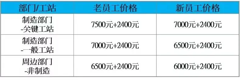 b.同工同酬发放说明:返费工平时工资为同工同酬,即底薪2350元+加班费+夜班补贴+岗位津贴等。周一到周五8小时内每小时13.5元,8小时外加班按1.5倍工资结算,折合20.26元/H;周六日全天按2倍工资结算,折合27元/H;法定节假日全天3倍工资,折合40.5元/H。