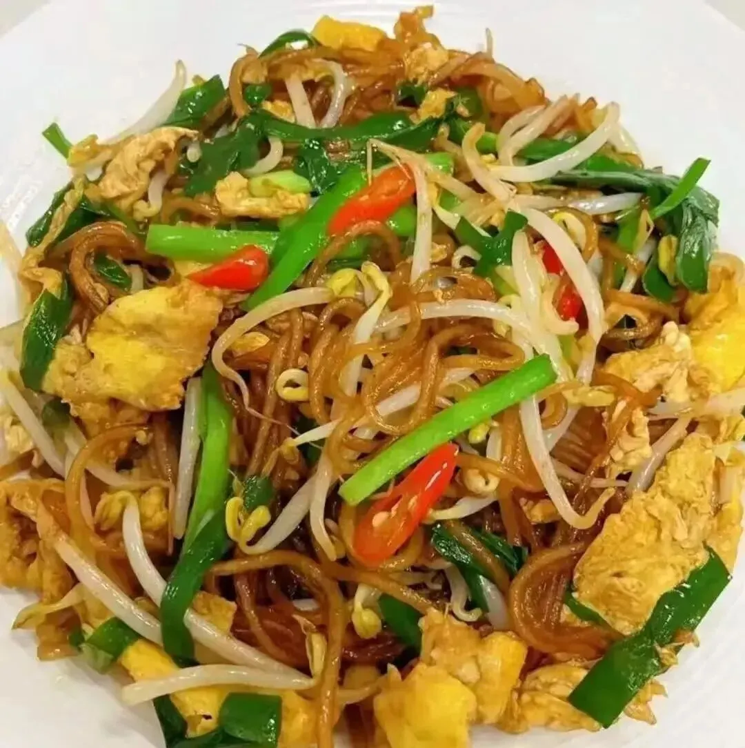 鸡蛋、绿豆芽、韭菜、蒜苗、盐、粉条、生抽、香油、醋。