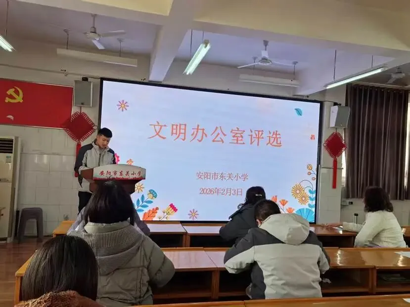 英语办公室以“开篇闪亮登场”拉开汇报序幕,独特的呈现方式让人眼前一亮。英语办公室以亮眼的风貌在评选中脱颖而出,办公室环境整洁雅致、布置温馨有序,各类办公用品摆放规范,细节处尽显用心,既营造了舒适的办公氛围,也传递出浓厚的教学氛围。科室全体教师始终怀揣对教育事业的赤诚热爱,将这份热爱融入日常的备课、教学、教研之中,以饱满的热情投入英语教学工作,在三尺讲台上传道授业,用专业与爱心陪伴学生成长,让英语课堂充满活力,展现了英语教师团队积极向上、敬业笃行的良好精神风貌。