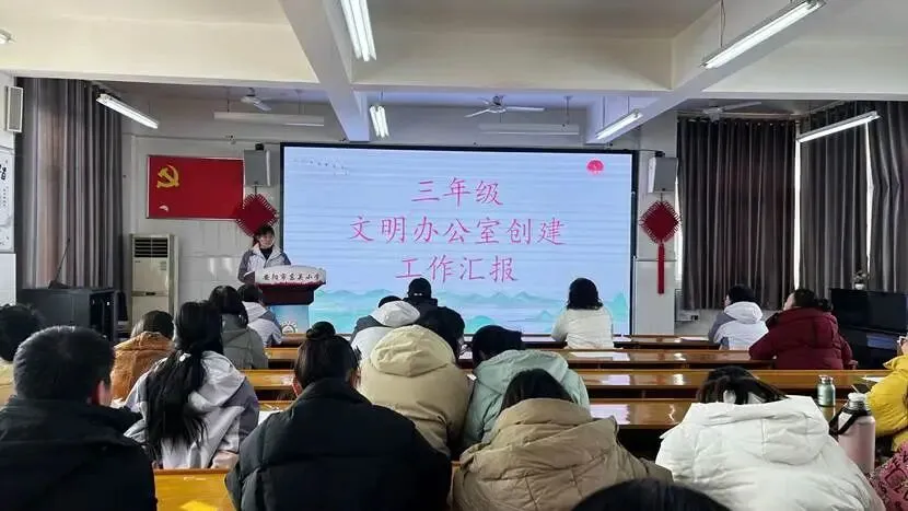 三年级办公室以“团队互助互爱”为核心主题进行了汇报,将“守望相助、携手共进”的团队精神展现得淋漓尽致。在日常工作中,无论是新教师的教学困惑,还是老教师的事务繁杂,办公室成员总能主动伸出援手,分享教学经验、分担工作压力。备课研讨时,大家各抒己见、取长补短,在思维的碰撞中打磨优质课堂;学生管理中,彼此互通情况、协同育人,用集体的力量为学生成长保驾护航。这种不分你我、互帮互助的氛围,不仅化解了工作中的诸多难题,更让每一位成员都感受到了团队的温暖与支撑,成为推动年级教育教学工作稳步前行的强大动力。