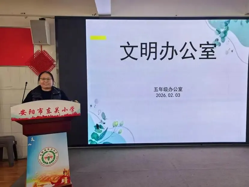 五年级办公室以“温馨、互助、文明、卫生”为核心,将协作精神贯穿于办公的每一个环节。温馨是办公室的底色,成员之间彼此关怀、真诚相待,工作之余的一句问候、遇到困难时的一份鼓励,让办公环境充满了家的温暖。互助是团队的常态,教学中共同探讨重难点、分享教学资源,生活中互帮互助、排忧解难,用默契的协作提升工作效率与质量。文明是行为的准则,大家自觉遵守校园规章制度,尊重他人、团结同事,沟通交流文明有礼,展现了良好的职业素养。卫生是基础的保障,每日轮流打扫、定期彻底清洁,保持办公区域干净整洁,为高效工作筑牢环境根基,四方合力奏响了文明和谐的办公乐章。