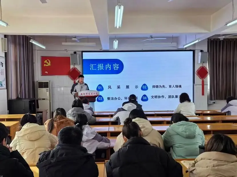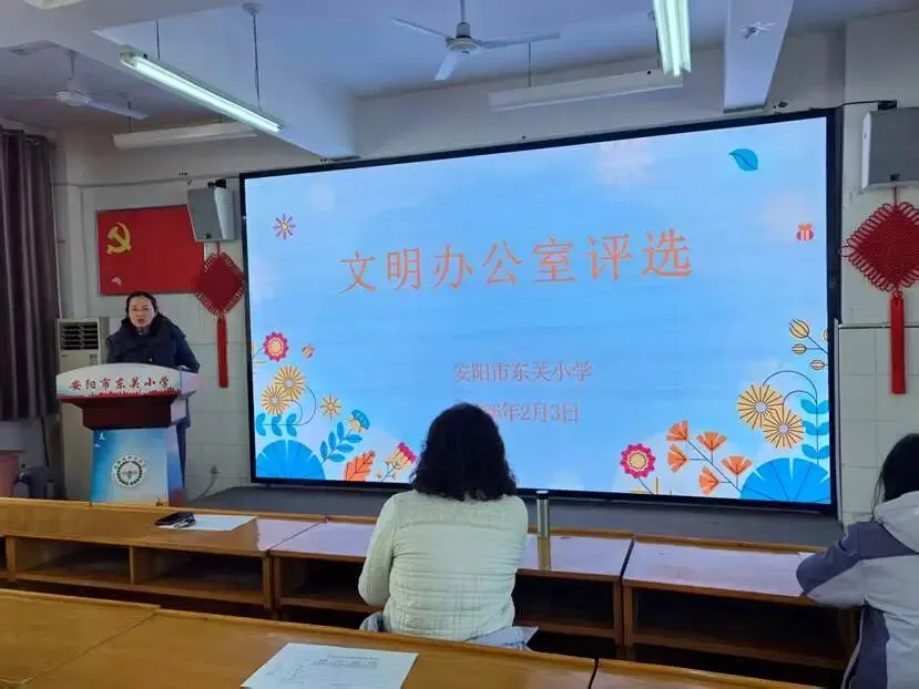 秦春红校长对本次文明办公室评选汇报活动给予了高度评价。她指出,各办公室的汇报精心筹备、特色鲜明,充分展现了老师们平时工作中的认真负责与精益求精。从汇报中能够深刻感受到,每一个办公室都是一个充满活力、温暖有爱的集体,成员之间互帮互助、携手共进,既有对工作的深度思考,又有对同事、对学生的真挚关爱,真正做到了“有温度、有深度、有力度”。这种如同家庭般的关爱与凝聚力,让人深受感动与温暖,也正是我校文明建设的核心所在。
