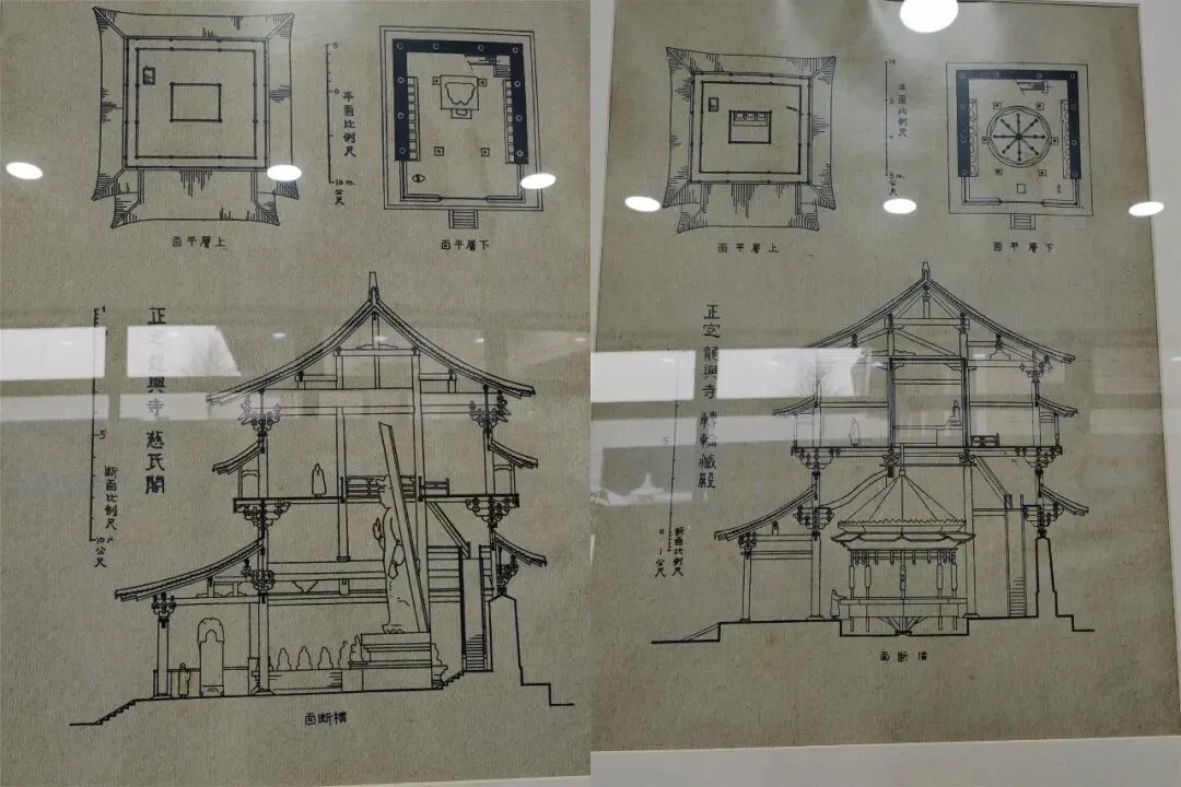 先看了梁思成文物保护史迹展馆,梁思成先生的古建筑手绘图,这一块可以对正定的古建筑群有一个整体的认识和了解。