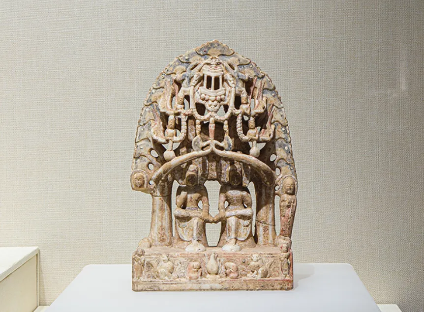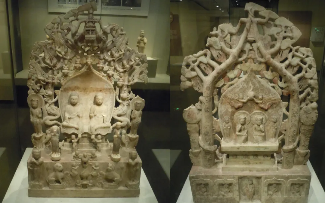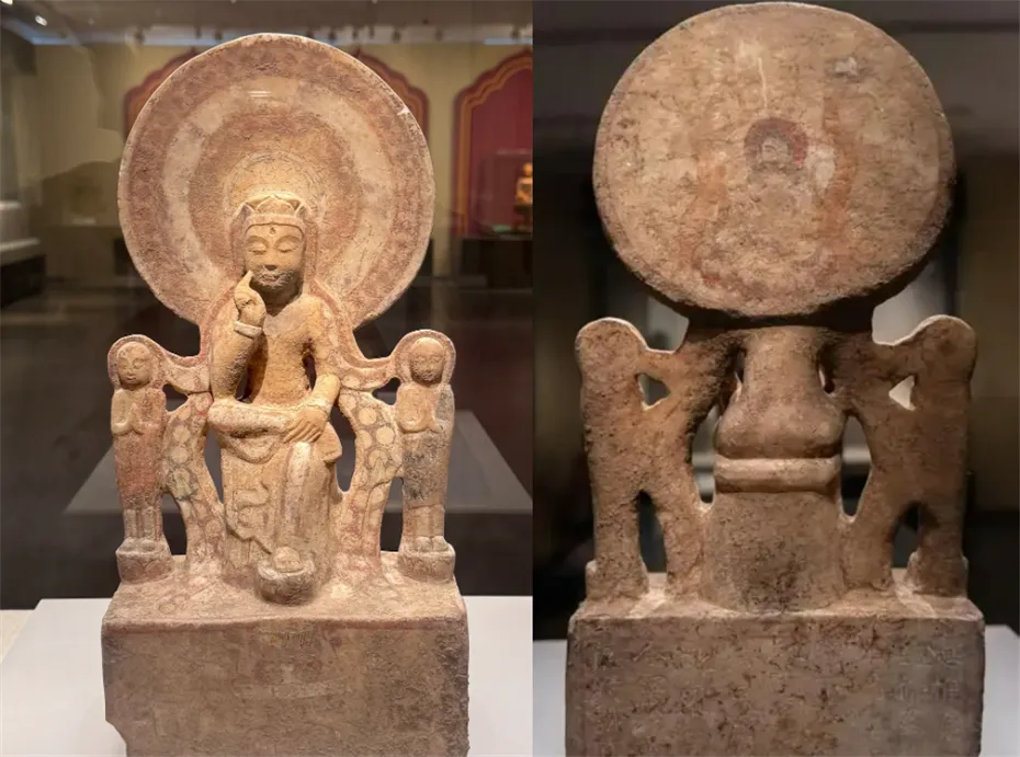 双思惟菩萨题材较为罕见,两侧菩萨相对而坐,构图和谐,入选国博展览的又一精品。