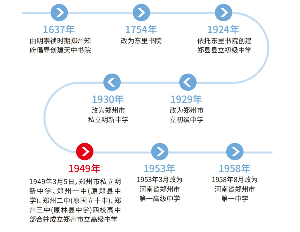 郑州市第一中学始创于1949年3月5日,一脉承袭天中书院(明)、东里书院(清)、明新中学(民国)的书院之风、治学之道,是一所具备丰厚的历史积淀和独特的精神内涵,以关注学生智慧与灵魂为学校文化内核,充满创新精神,能够培养具有国际视野的拔尖人才,拥有核心竞争力的国内名校。学校在国际上也享有较高知名度。