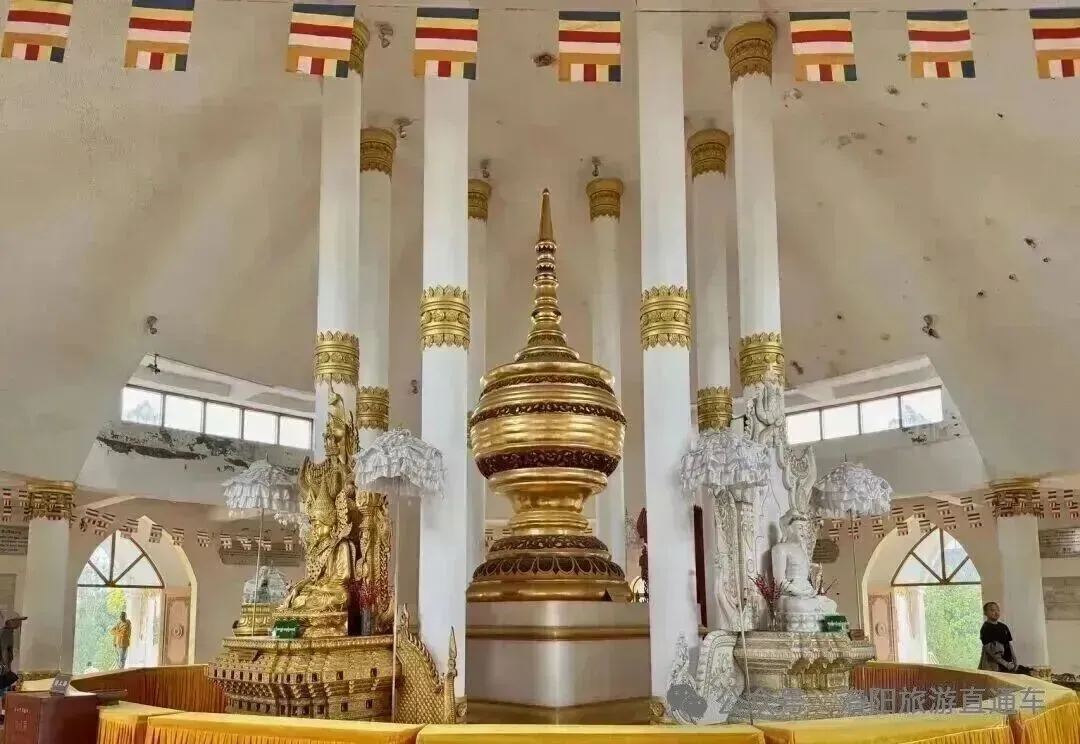 由缅甸政府出资修建。2012年工程奠基,2014年6月工程竣工,并正式对外开放。长108米,宽65米。佛塔苑仿曼德勒皇宫样式。主体建筑缅甸大金塔,仿仰光大金塔规制缩小而建,高32.92米。通体金黄,在阳光下熠熠生辉,气势恢宏。