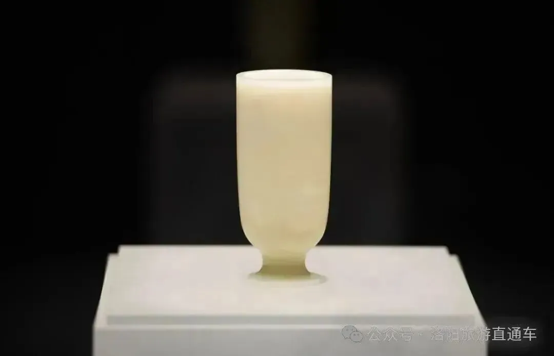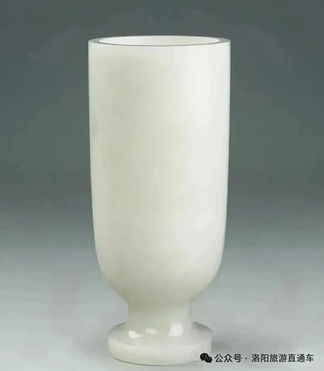 杯子的高度约为13厘米,杯口的直径约为5厘米,它采用的是名贵的和田美玉雕琢而成,它的整体为圆体造型,直筒筒,圆饼型高足。它通体没有花纹,却给人们以强烈的自然简约之美,它完美体现了魏晋时期中正平和,大道至简的艺术风格,据说它是目前我们国家发现的三国时期最精美的酒器。