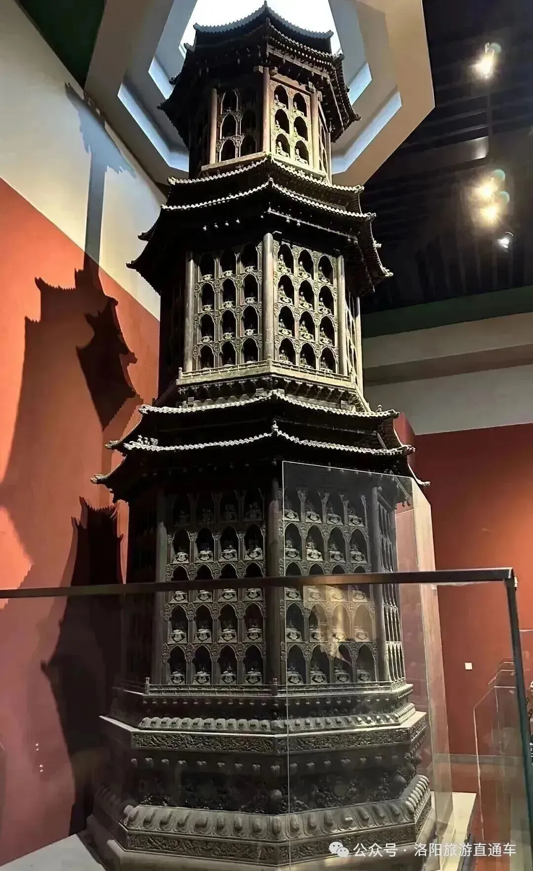 此塔原来藏于北京故宫慈宁宫的大佛堂,是清代乾隆皇帝为其母亲甄嬛所做的70大寿礼物,此木塔高度约为6米,重量约为4吨,它共有三层,由金丝楠木雕刻而成,采用的是榫卯结构连接,没有一钉一瓦,结构设计非常的巧妙,周身有304个佛龛,每个龛中都供奉了一尊鎏金菩萨,雕刻手法多样,堪称佛教艺术中的珍品。在1973年时,为了迎接柬埔寨西哈努克亲王访问洛阳,周总理特批将佛塔在内的两千二百多件文物调拔到了洛阳。