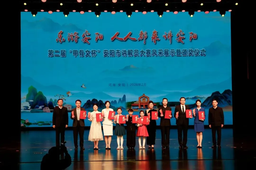 2月3日,第二届“甲骨文杯”安阳市讲解员大赛风采展示暨颁奖仪式在文字博物馆演艺中心成功举办。来自内黄县的参赛选手丁淼锐凭借其出色表现,在众多优秀选手中脱颖而出,荣获大赛铜奖。