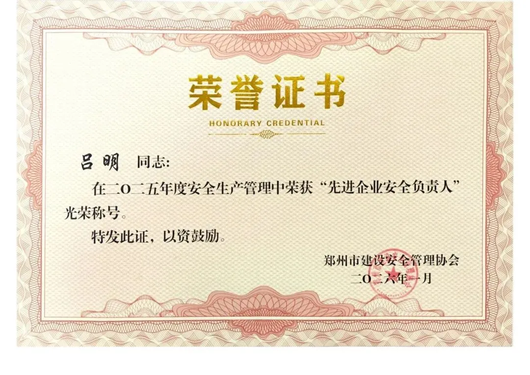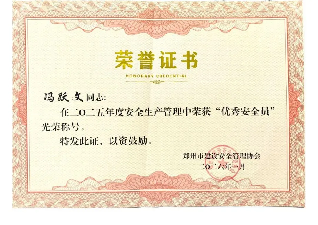 近日,在郑州市建设安全管理协会组织开展的2025年度建设安全生产先进评选中,郑州公用集团中部建设安全负责人获评“先进企业安全负责人”,公司一名安全管理员荣获“优秀安全员”称号。此次获奖,体现了行业对公司安全生产管理水平和责任落实成效的认可,也是对集团工程施工板块安全工作的充分肯定。